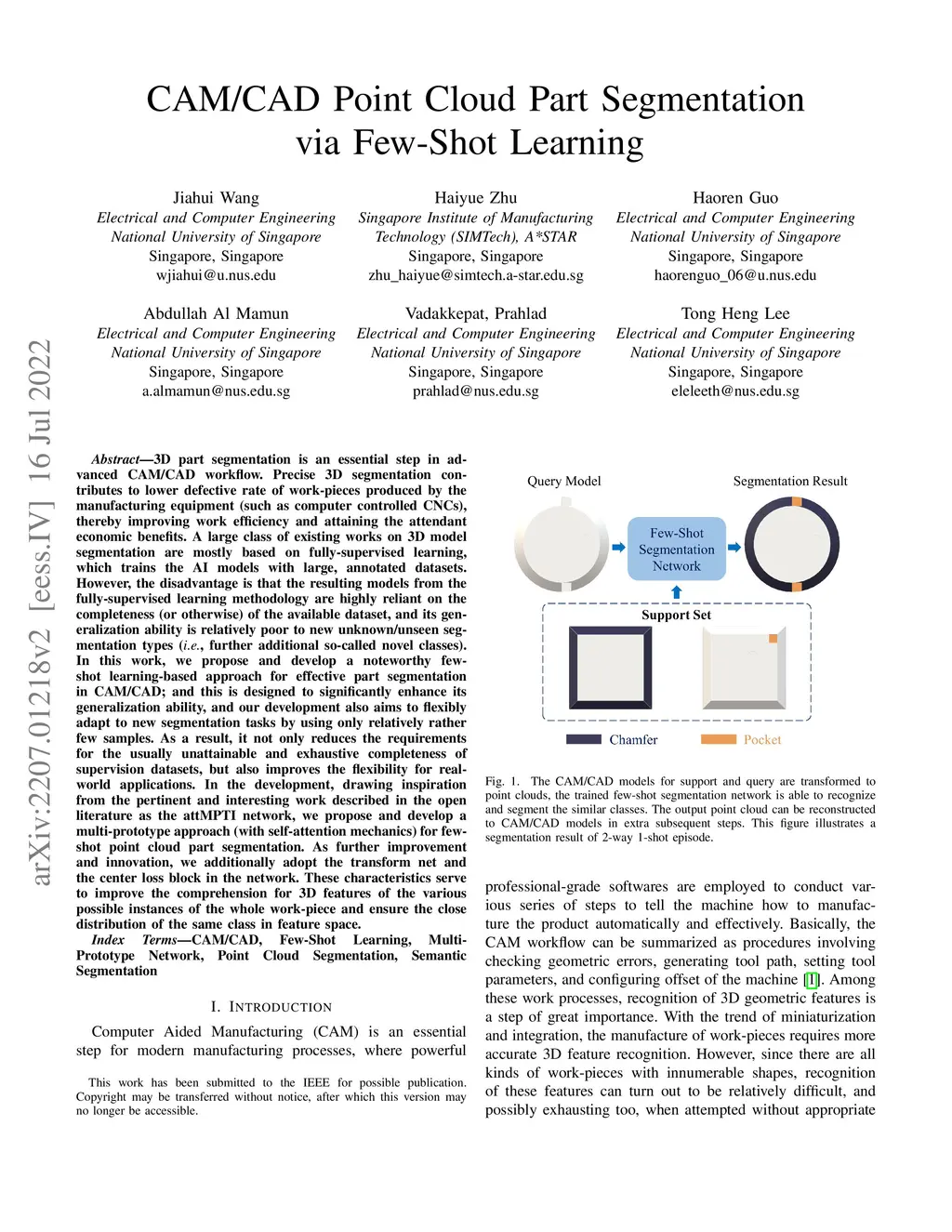 CAM/CAD Point Cloud Part Segmentation via Few-Shot Learning