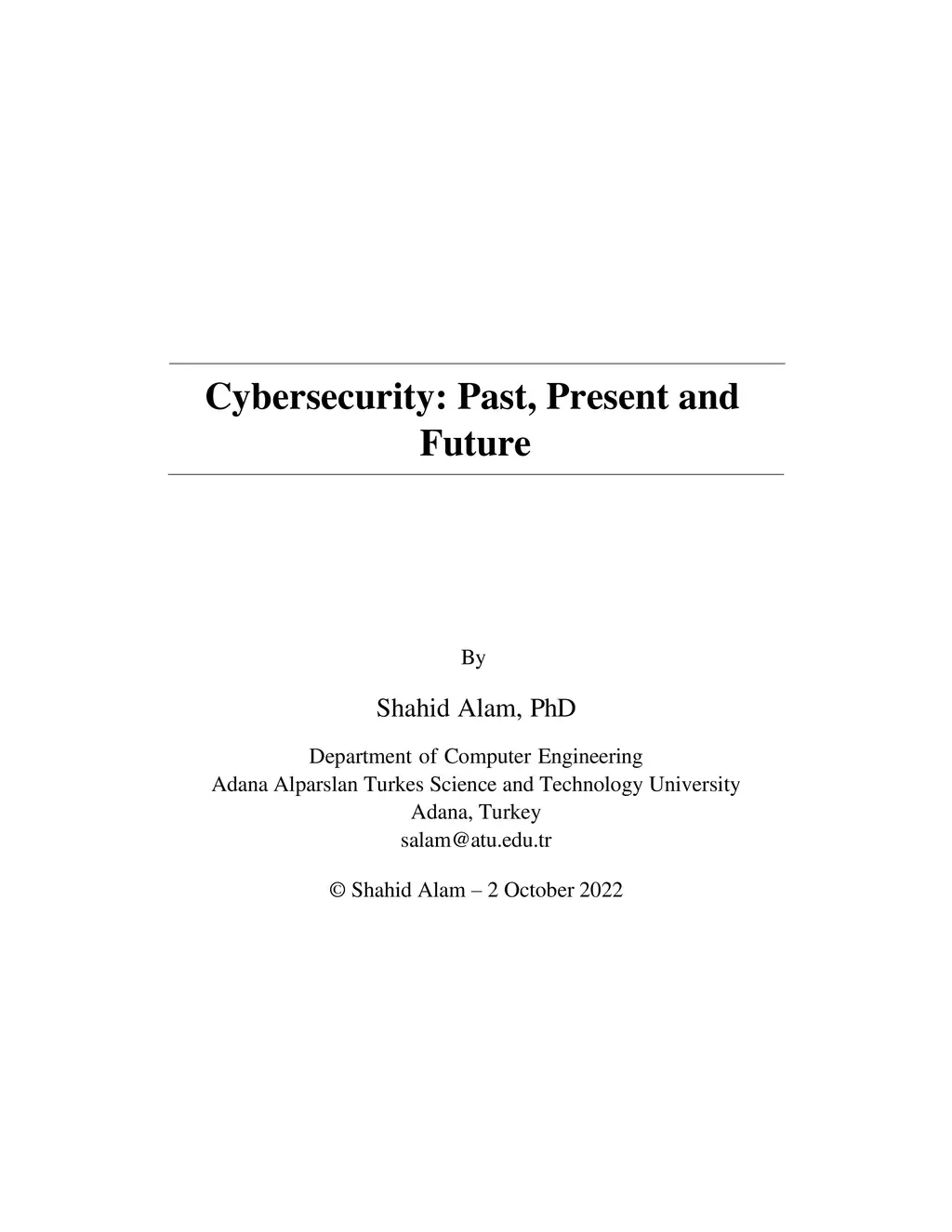 Cybersecurity: Past, Present and Future