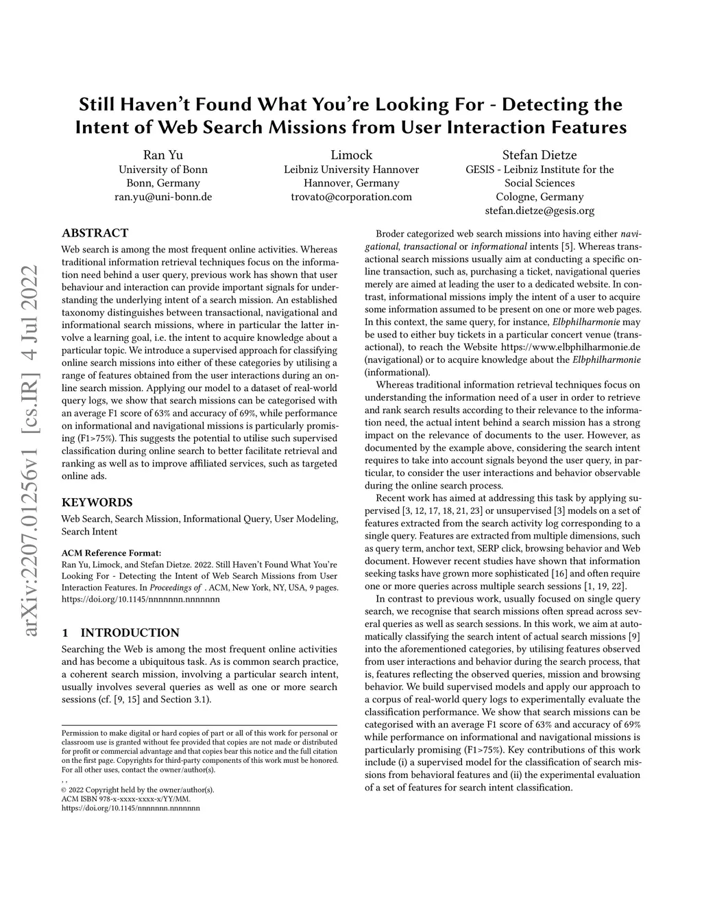 Still Haven't Found What You're Looking For -- Detecting the Intent of