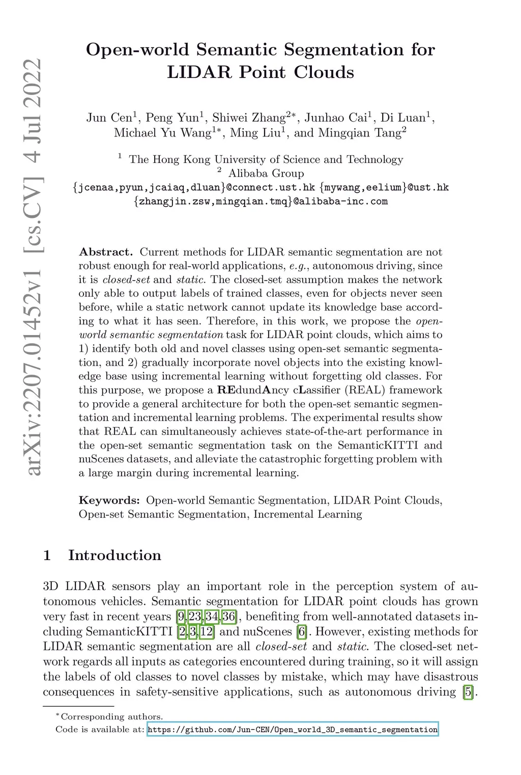 Current methods for LIDAR semantic segmentation are not robust enough for real-world applications, e.g., autonomous driving, since it is closed-set and static. The closed-set assumption makes the network only able to output labels of trained classes, even for objects never seen before, while a static network cannot update its knowledge base according to what it has seen. Therefore, in this work, we propose the open-world semantic segmentation task for LIDAR point clouds, which aims to 1) identify both old and novel classes using open-set semantic segmentation, and 2) gradually incorporate novel objects into the existing knowledge base using incremental learning without forgetting old classes. For this purpose, we propose a REdundAncy cLassifier (REAL) framework to provide a general architecture for both the open-set semantic segmentation and incremental learning problems. The experimental results show that REAL can simultaneously achieves state-of-the-art performance in the open-set semantic segmentation task on the SemanticKITTI and nuScenes datasets, and alleviate the catastrophic forgetting problem with a large margin during incremental learning.