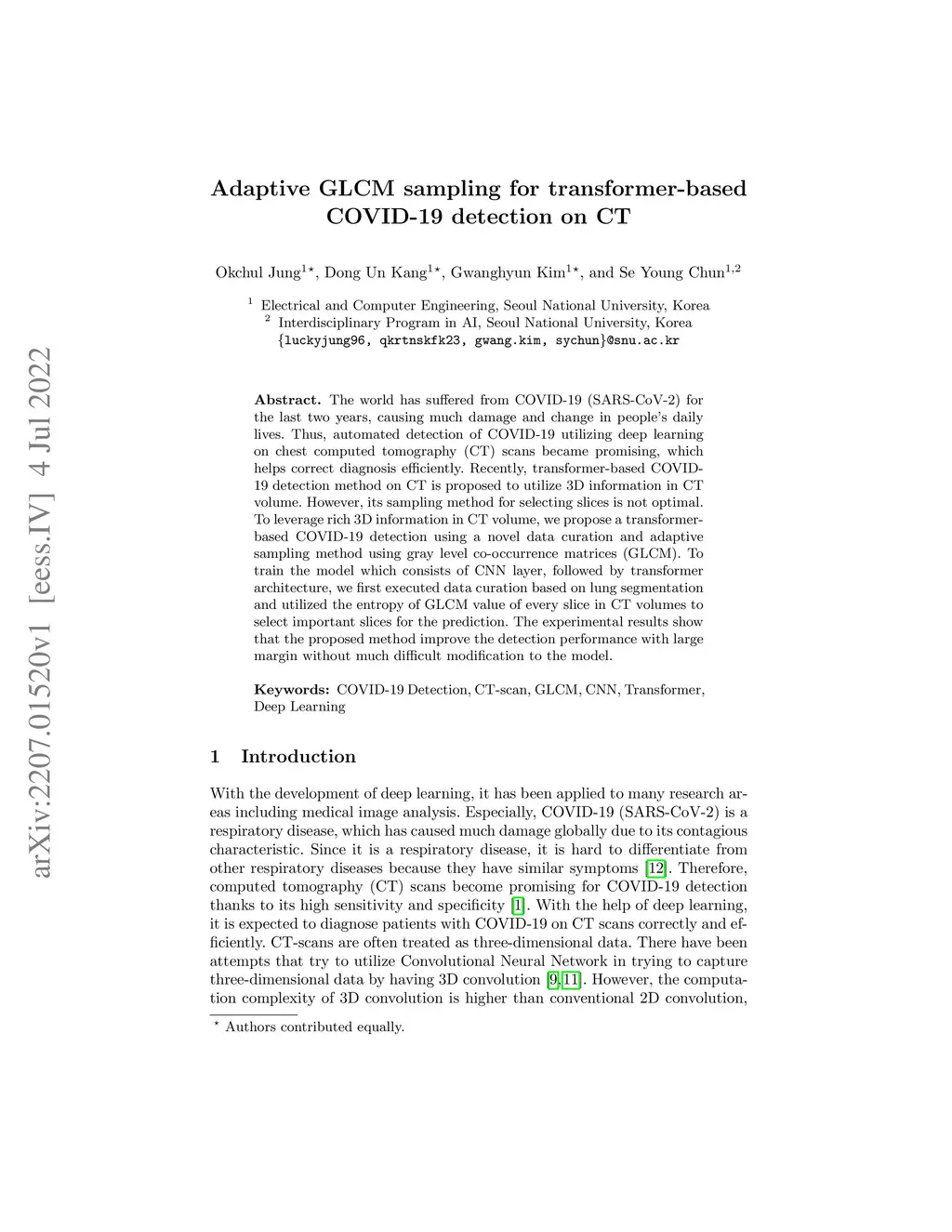 Adaptive GLCM sampling for transformer-based COVID-19 detection on CT