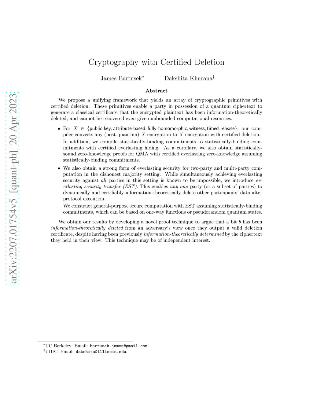 Cryptography with Certified Deletion
