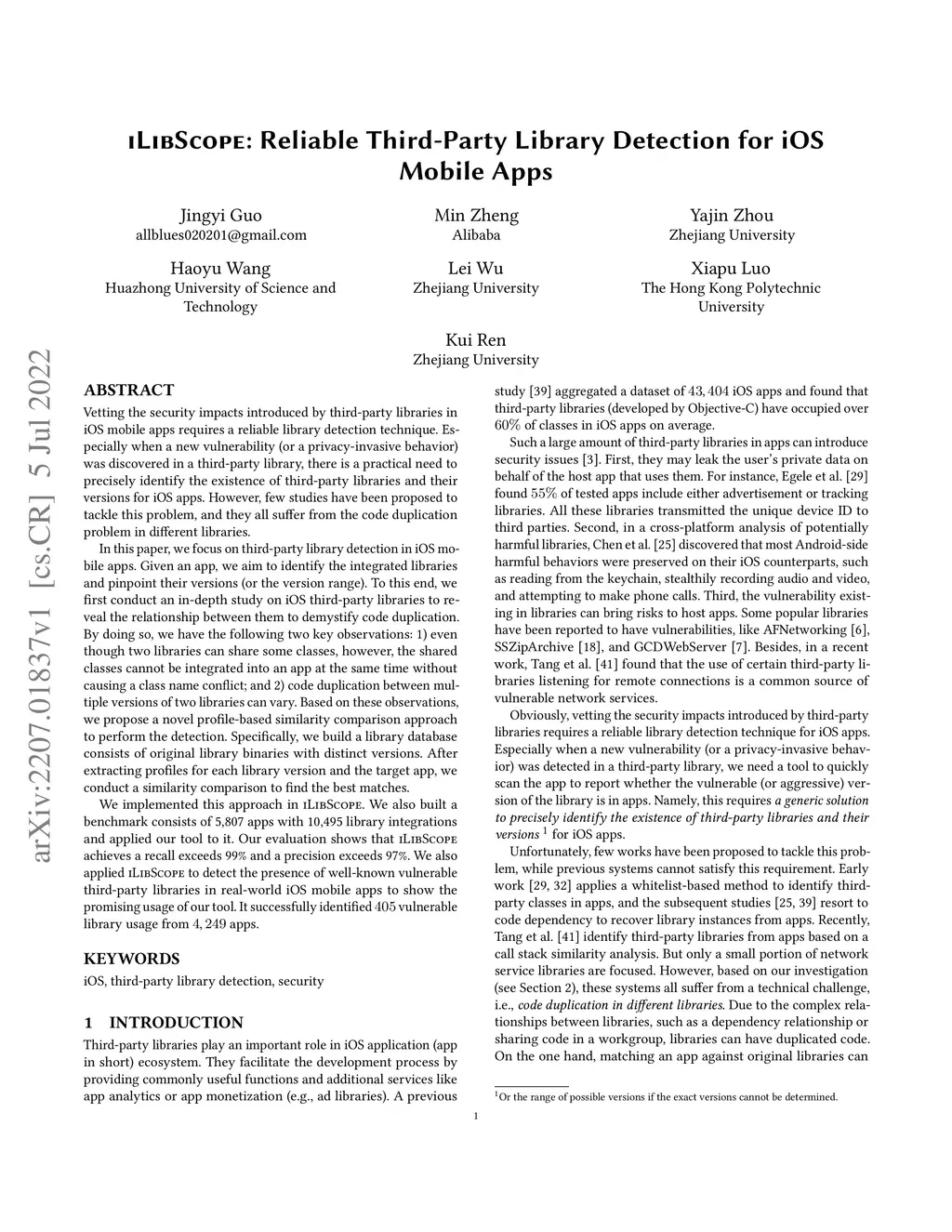iLibScope: Reliable Third-Party Library Detection for iOS Mobile Apps