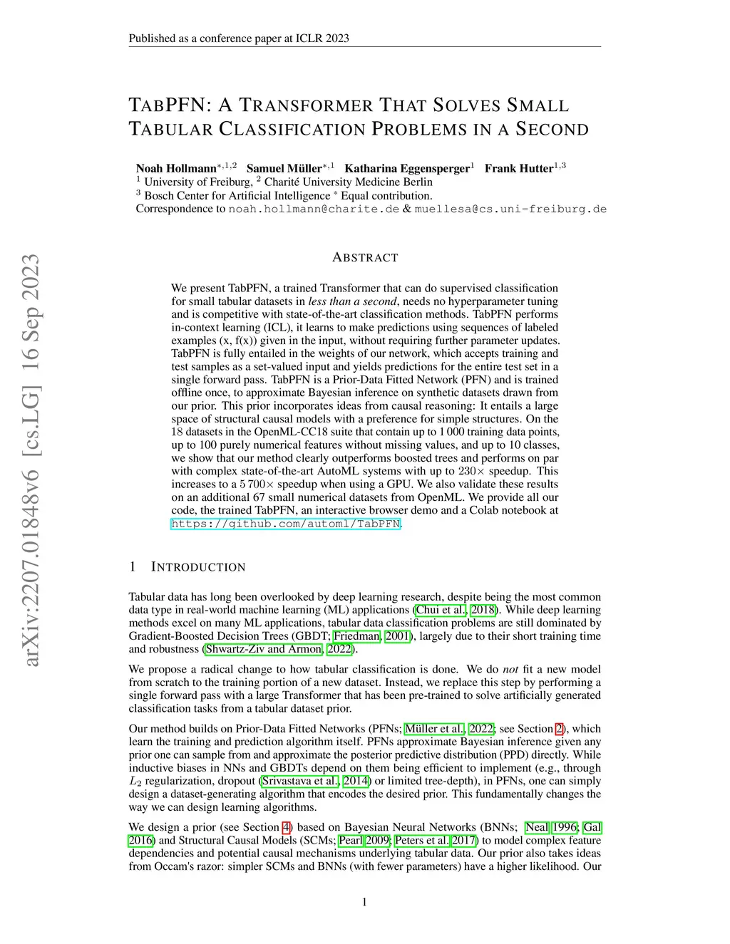 TabPFN: A Transformer That Solves Small Tabular Classification Problems