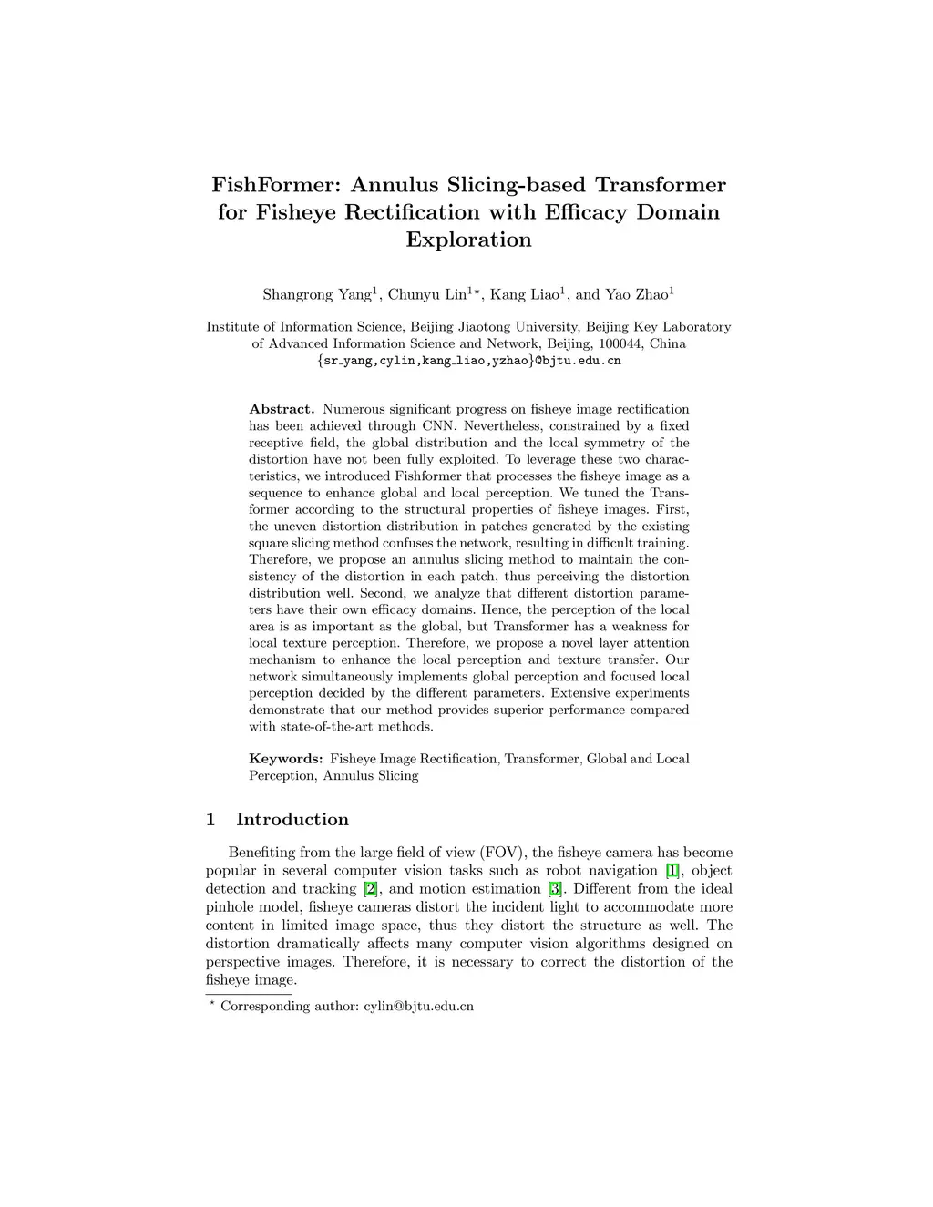 FishFormer: Annulus Slicing-based Transformer for Fisheye Rectification