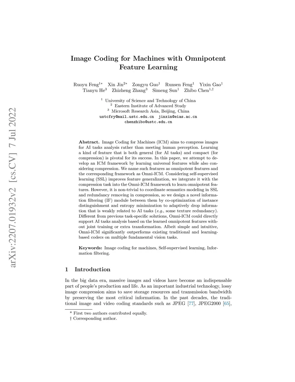 Image Coding for Machines with Omnipotent Feature Learning