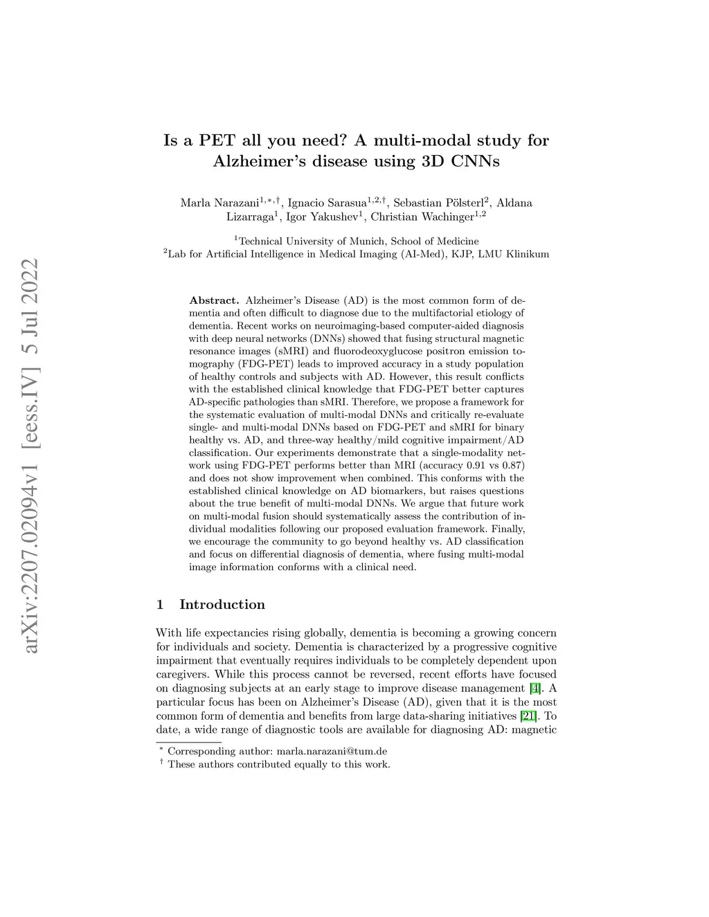 Is a PET all you need? A multi-modal study for Alzheimer's disease using