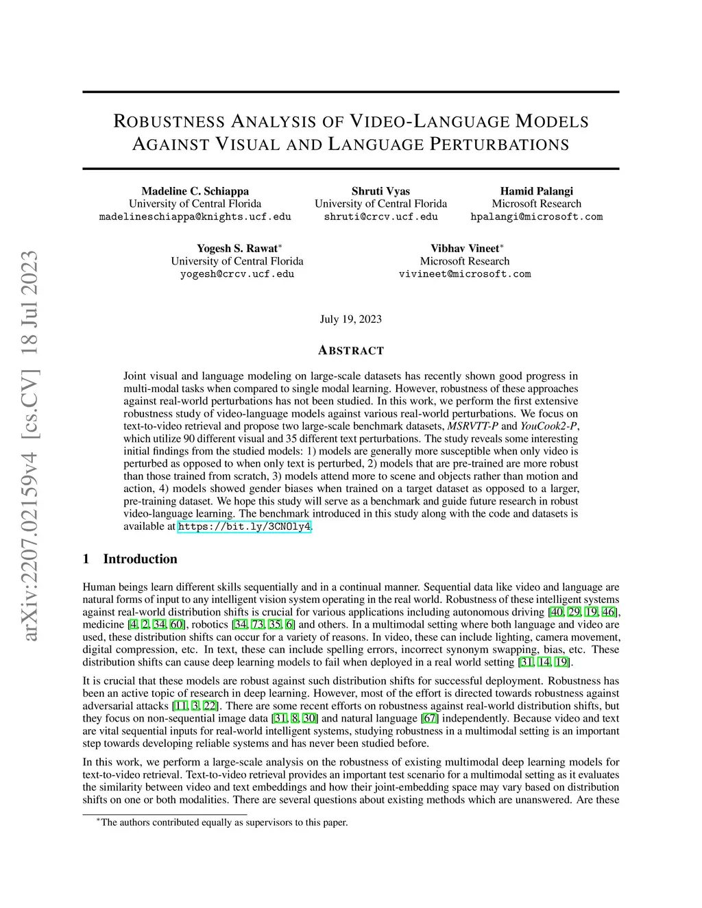 Robustness Analysis of Video-Language Models Against Visual and Language