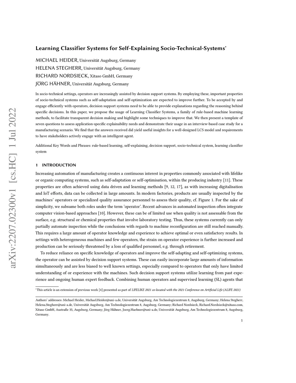 Learning Classifier Systems for Self-Explaining Socio-Technical-Systems