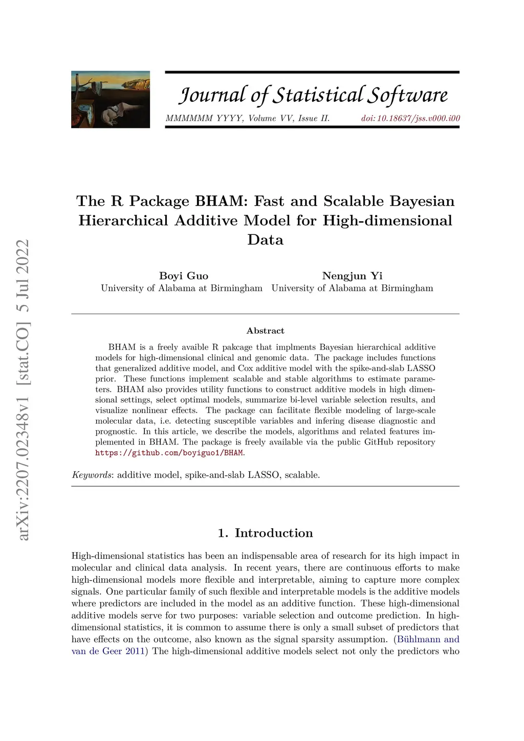 BHAM is a freely avaible R pakcage that implments Bayesian hierarchical additive models for high-dimensional clinical and genomic data. The package includes functions that generalized additive model, and Cox additive model with the spike-and-slab LASSO prior. These functions implement scalable and stable algorithms to estimate parameters. BHAM also provides utility functions to construct additive models in high dimensional settings, select optimal models, summarize bi-level variable selection results, and visualize nonlinear effects. The package can facilitate flexible modeling of large-scale molecular data, i.e. detecting susceptible variables and infering disease diagnostic and prognostic. In this article, we describe the models, algorithms and related features implemented in BHAM. The package is freely available via the public GitHub repository https://github.com/boyiguo1/BHAM.