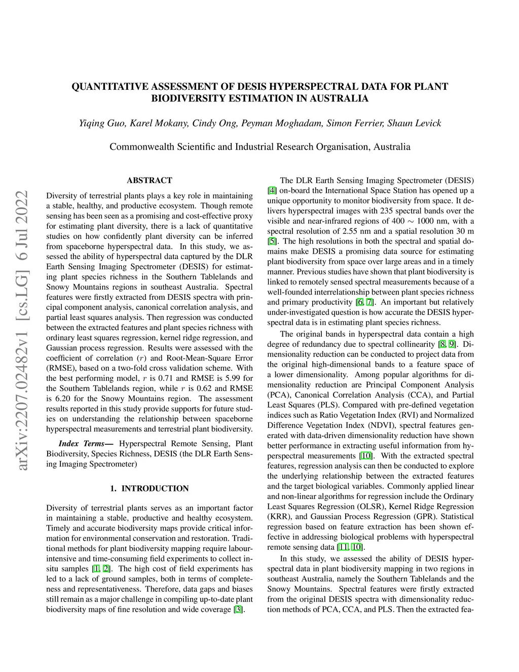 Biodiversity Estimation in Australia