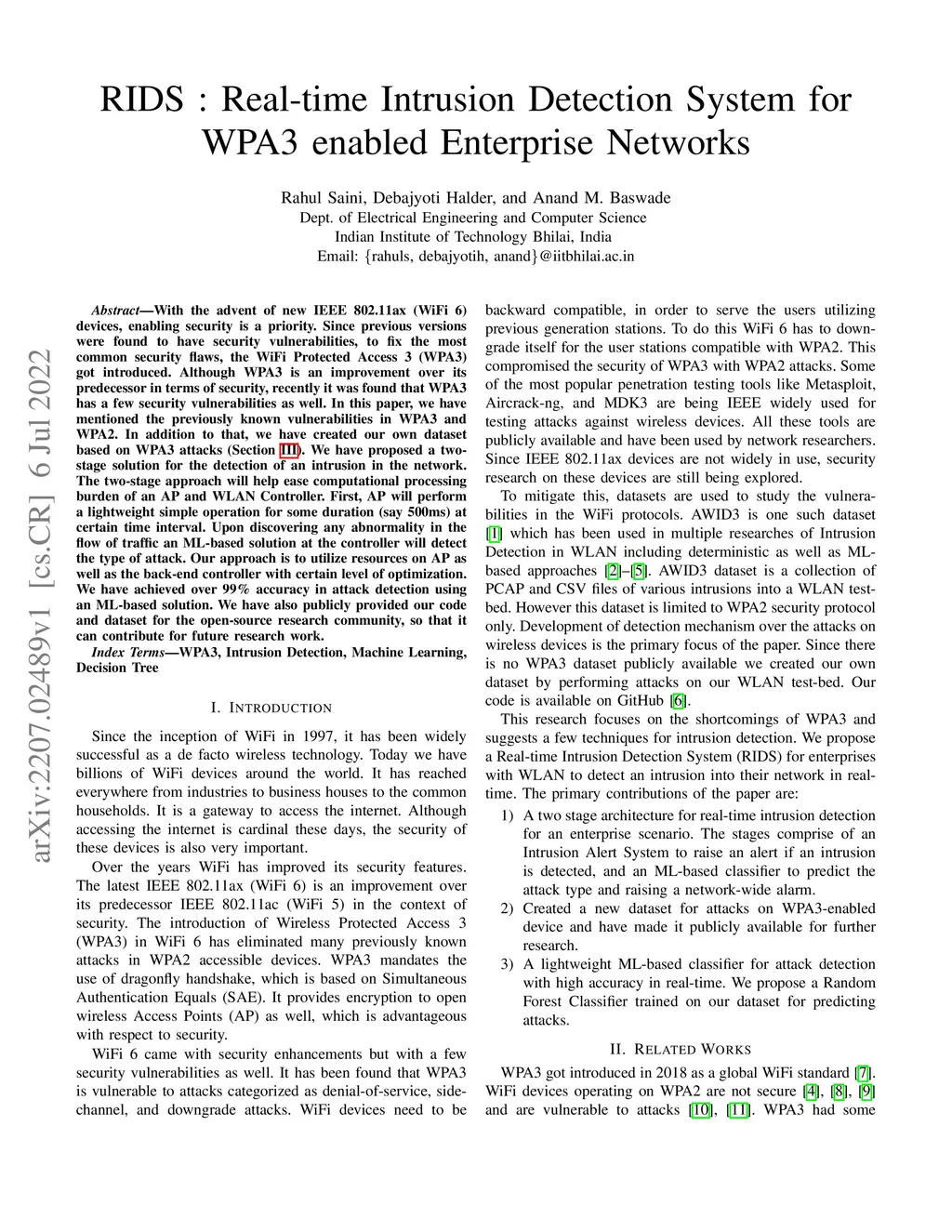 RIDS : Real-time Intrusion Detection System for WPA3 enabled Enterprise