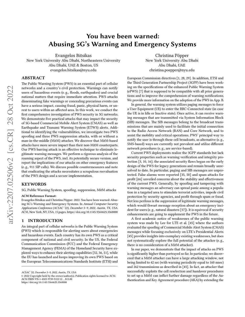 You have been warned: Abusing 5G's Warning and Emergency Systems