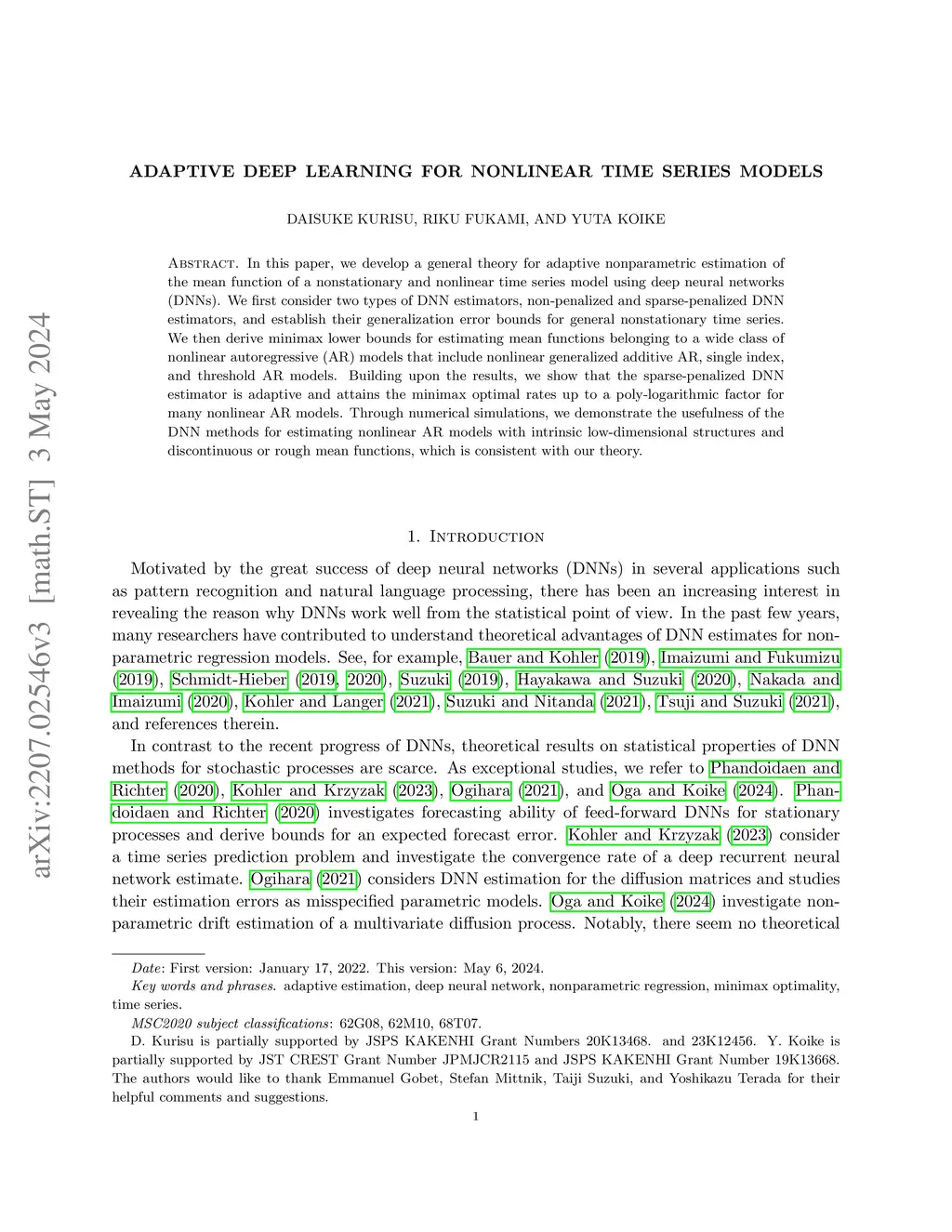 In this paper, we develop a general theory for adaptive nonparametric estimation of the mean function of a non-stationary and nonlinear time series model using deep neural networks (DNNs). We first consider two types of DNN estimators, non-penalized and sparse-penalized DNN estimators, and establish their generalization error bounds for general non-stationary time series. We then derive minimax lower bounds for estimating mean functions belonging to a wide class of nonlinear autoregressive (AR) models that include nonlinear generalized additive AR, single index, and threshold AR models. Building upon the results, we show that the sparse-penalized DNN estimator is adaptive and attains the minimax optimal rates up to a poly-logarithmic factor for many nonlinear AR models. Through numerical simulations, we demonstrate the usefulness of the DNN methods for estimating nonlinear AR models with intrinsic low-dimensional structures and discontinuous or rough mean functions, which is consistent with our theory.