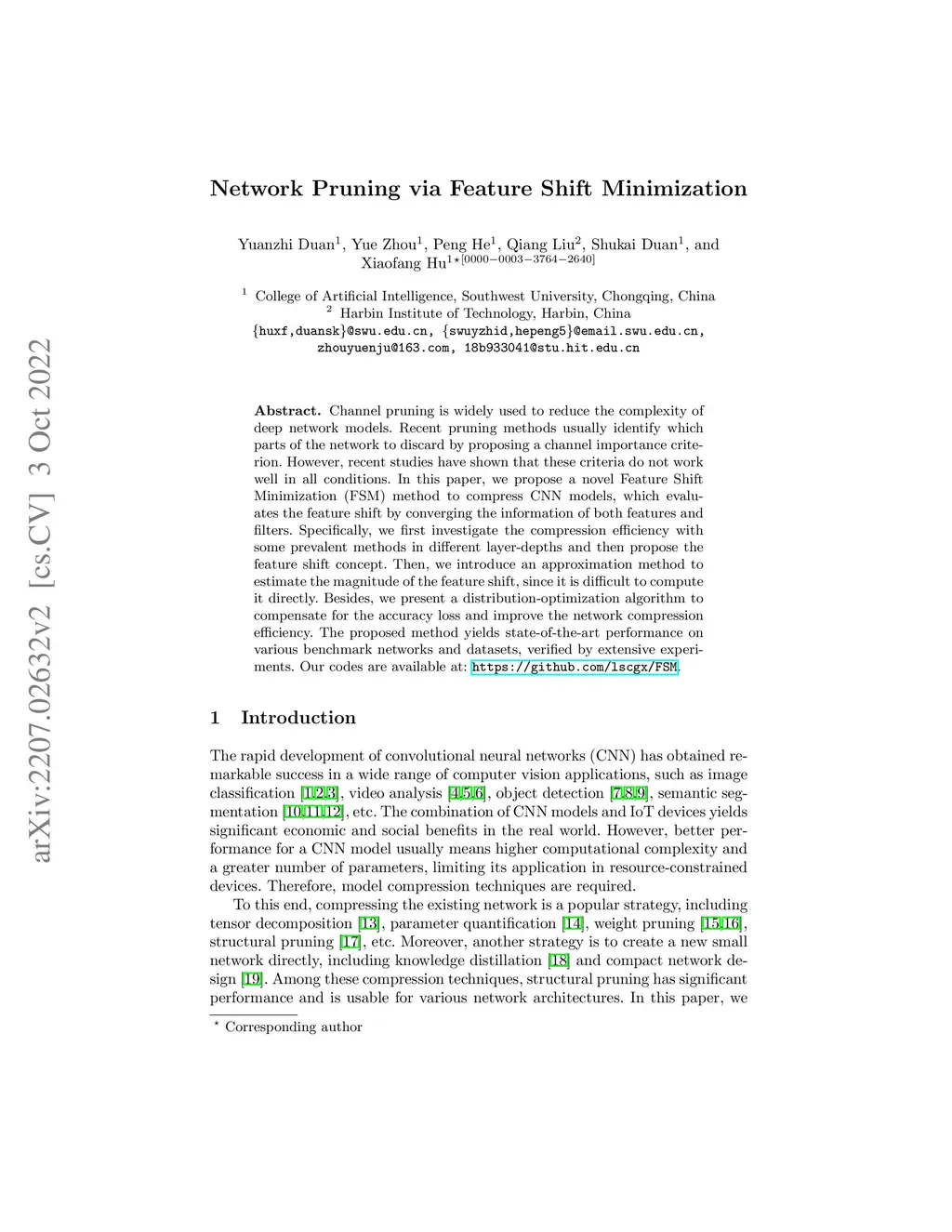 Network Pruning via Feature Shift Minimization