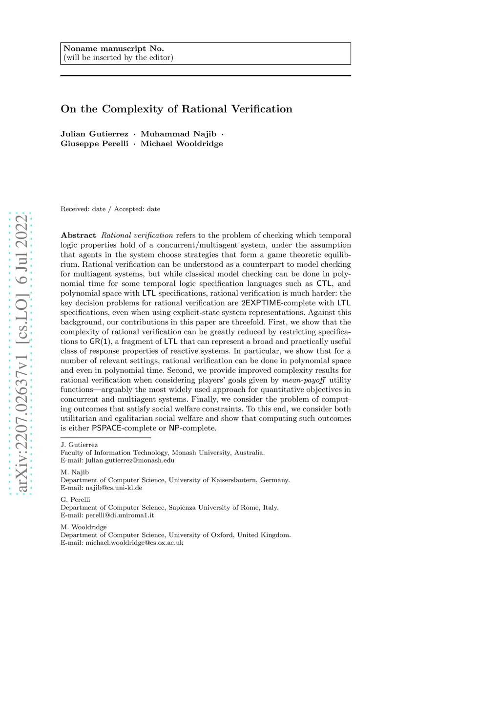Rational verification refers to the problem of checking which temporal logic properties hold of a concurrent multiagent system, under the assumption that agents in the system choose strategies that form a game-theoretic equilibrium. Rational verification can be understood as a counterpart to model checking for multiagent systems, but while classical model checking can be done in polynomial time for some temporal logic specification languages such as CTL, and polynomial space with LTL specifications, rational verification is much harder: the key decision problems for rational verification are 2EXPTIME-complete with LTL specifications, even when using explicit-state system representations. Against this background, our contributions in this paper are threefold. First, we show that the complexity of rational verification can be greatly reduced by restricting specifications to GR(1), a fragment of LTL that can represent a broad and practically useful class of response properties of reactive systems. In particular, we show that for a number of relevant settings, rational verification can be done in polynomial space and even in polynomial time. Second, we provide improved complexity results for rational verification when considering players' goals given by mean-payoff utility functions; arguably the most widely used approach for quantitative objectives in concurrent and multiagent systems. Finally, we consider the problem of computing outcomes that satisfy social welfare constraints. To this end, we consider both utilitarian and egalitarian social welfare and show that computing such outcomes is either PSPACE-complete or NP-complete.