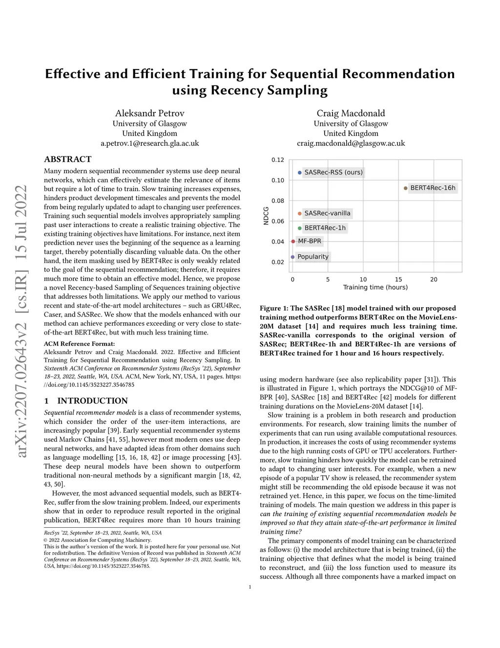 Effective and Efficient Training for Sequential Recommendation using