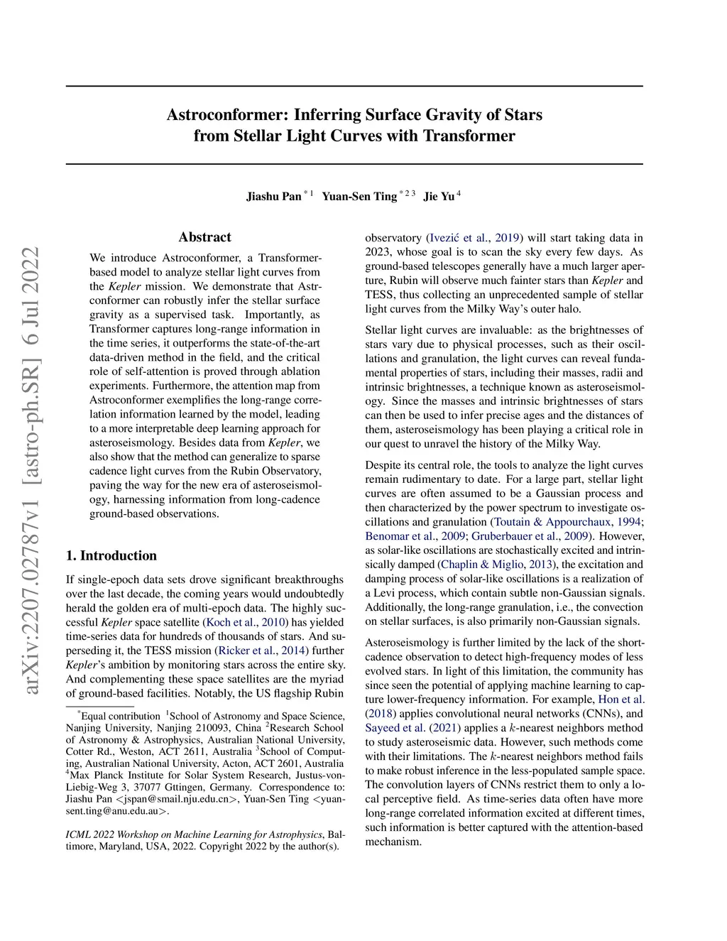 Astroconformer: Inferring Surface Gravity of Stars from Stellar Light