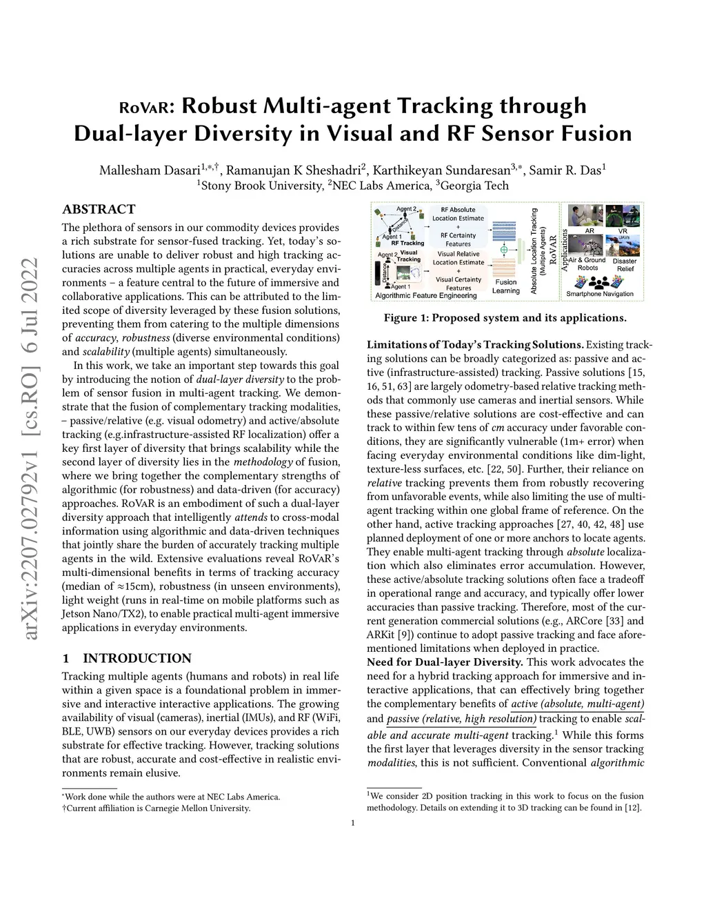 The plethora of sensors in our commodity devices provides a rich substrate for sensor-fused tracking. Yet, today's solutions are unable to deliver robust and high tracking accuracies across multiple agents in practical, everyday environments - a feature central to the future of immersive and collaborative applications. This can be attributed to the limited scope of diversity leveraged by these fusion solutions, preventing them from catering to the multiple dimensions of accuracy, robustness (diverse environmental conditions) and scalability (multiple agents) simultaneously. In this work, we take an important step towards this goal by introducing the notion of dual-layer diversity to the problem of sensor fusion in multi-agent tracking. We demonstrate that the fusion of complementary tracking modalities, - passive/relative (e.g., visual odometry) and active/absolute tracking (e.g., infrastructure-assisted RF localization) offer a key first layer of diversity that brings scalability while the second layer of diversity lies in the methodology of fusion, where we bring together the complementary strengths of algorithmic (for robustness) and data-driven (for accuracy) approaches. RoVaR is an embodiment of such a dual-layer diversity approach that intelligently attends to cross-modal information using algorithmic and data-driven techniques that jointly share the burden of accurately tracking multiple agents in the wild. Extensive evaluations reveal RoVaR's multi-dimensional benefits in terms of tracking accuracy (median of 15cm), robustness (in unseen environments), light weight (runs in real-time on mobile platforms such as Jetson Nano/TX2), to enable practical multi-agent immersive applications in everyday environments.