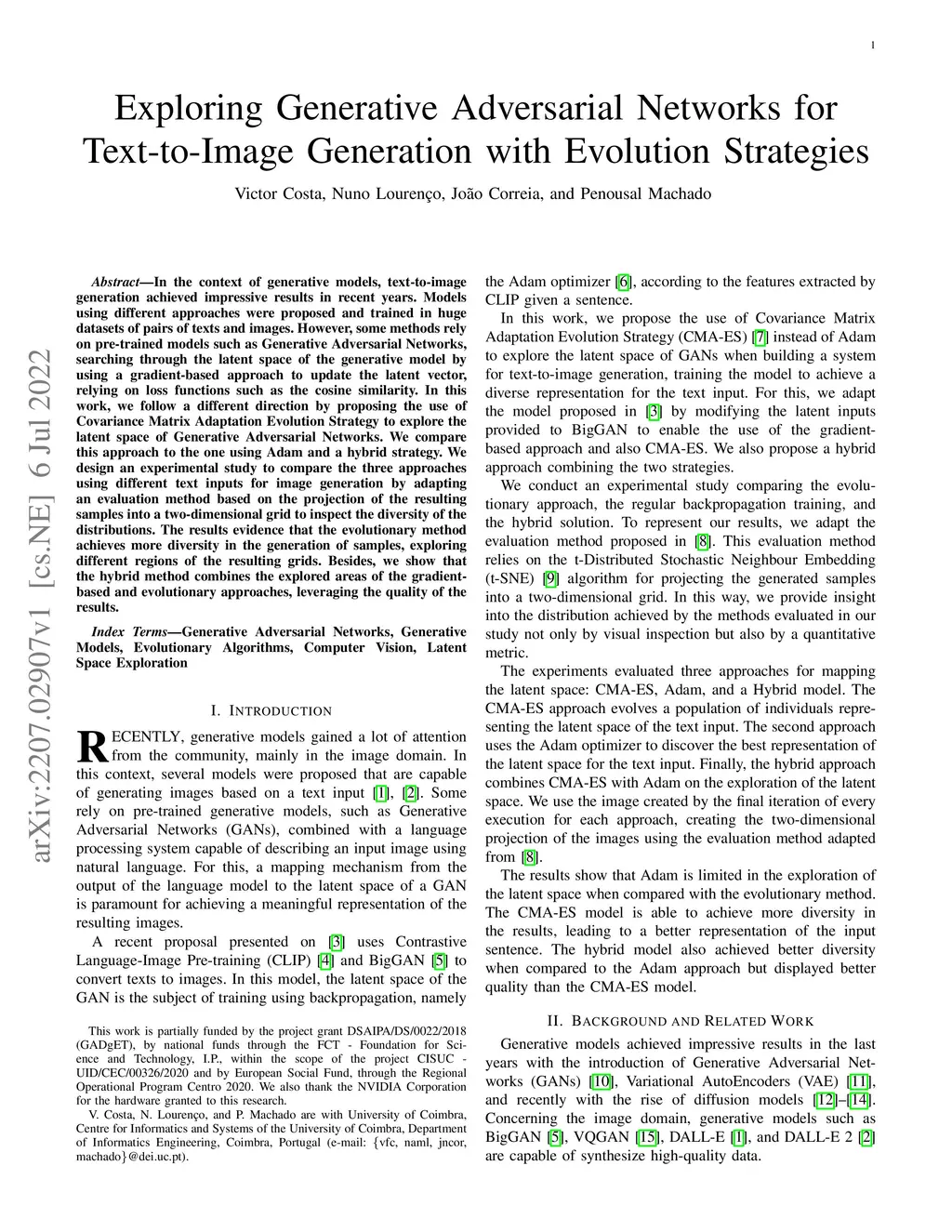 In the context of generative models, text-to-image generation achieved impressive results in recent years. Models using different approaches were proposed and trained in huge datasets of pairs of texts and images. However, some methods rely on pre-trained models such as Generative Adversarial Networks, searching through the latent space of the generative model by using a gradient-based approach to update the latent vector, relying on loss functions such as the cosine similarity. In this work, we follow a different direction by proposing the use of Covariance Matrix Adaptation Evolution Strategy to explore the latent space of Generative Adversarial Networks. We compare this approach to the one using Adam and a hybrid strategy. We design an experimental study to compare the three approaches using different text inputs for image generation by adapting an evaluation method based on the projection of the resulting samples into a two-dimensional grid to inspect the diversity of the distributions. The results evidence that the evolutionary method achieves more diversity in the generation of samples, exploring different regions of the resulting grids. Besides, we show that the hybrid method combines the explored areas of the gradient-based and evolutionary approaches, leveraging the quality of the results.