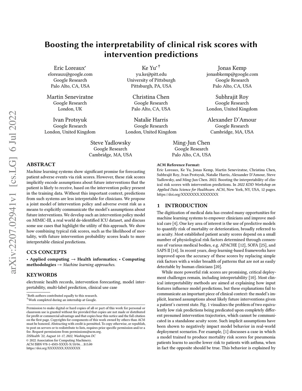 Machine learning systems show significant promise for forecasting patient adverse events via risk scores. However, these risk scores implicitly encode assumptions about future interventions that the patient is likely to receive, based on the intervention policy present in the training data. Without this important context, predictions from such systems are less interpretable for clinicians. We propose a joint model of intervention policy and adverse event risk as a means to explicitly communicate the model's assumptions about future interventions. We develop such an intervention policy model on MIMIC-III, a real world de-identified ICU dataset, and discuss some use cases that highlight the utility of this approach. We show how combining typical risk scores, such as the likelihood of mortality, with future intervention probability scores leads to more interpretable clinical predictions.