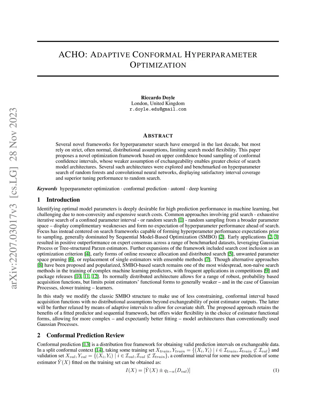 ACHO: Adaptive Conformal Hyperparameter Optimization