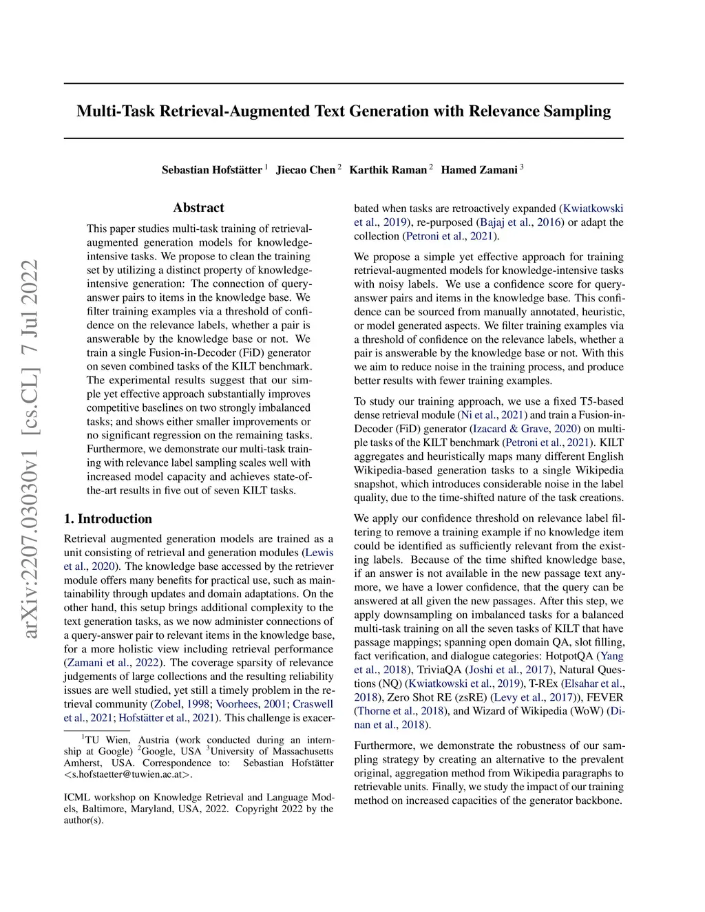 Multi-Task Retrieval-Augmented Text Generation with Relevance Sampling