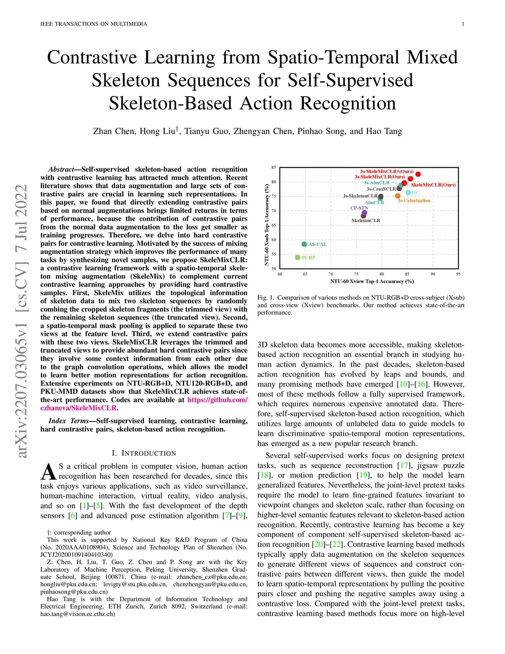 Contrastive Learning from Spatio-Temporal Mixed Skeleton Sequences for