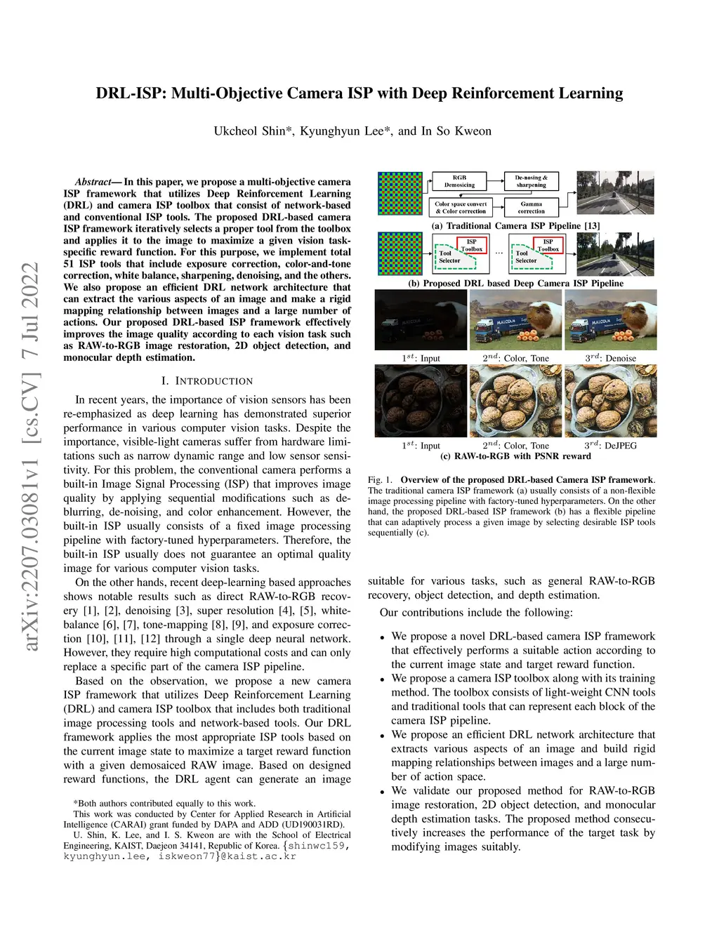 DRL-ISP: Multi-Objective Camera ISP with Deep Reinforcement Learning