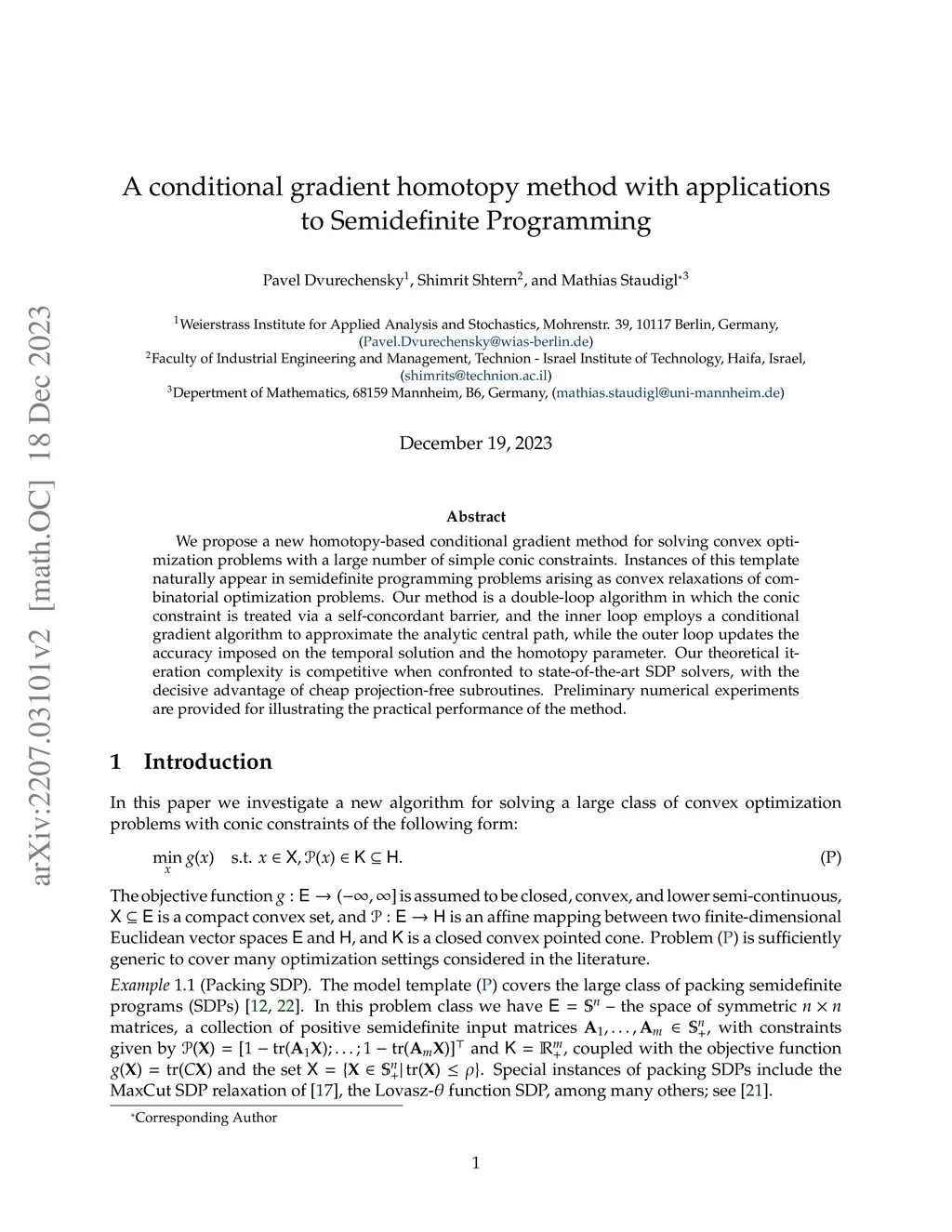 A conditional gradient homotopy method with applications to Semidefinite Programming