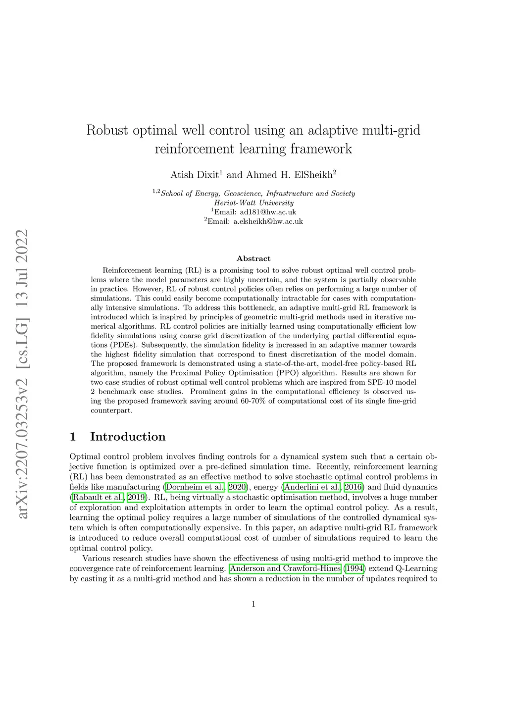 Robust optimal well control using an adaptive multi-grid reinforcement
