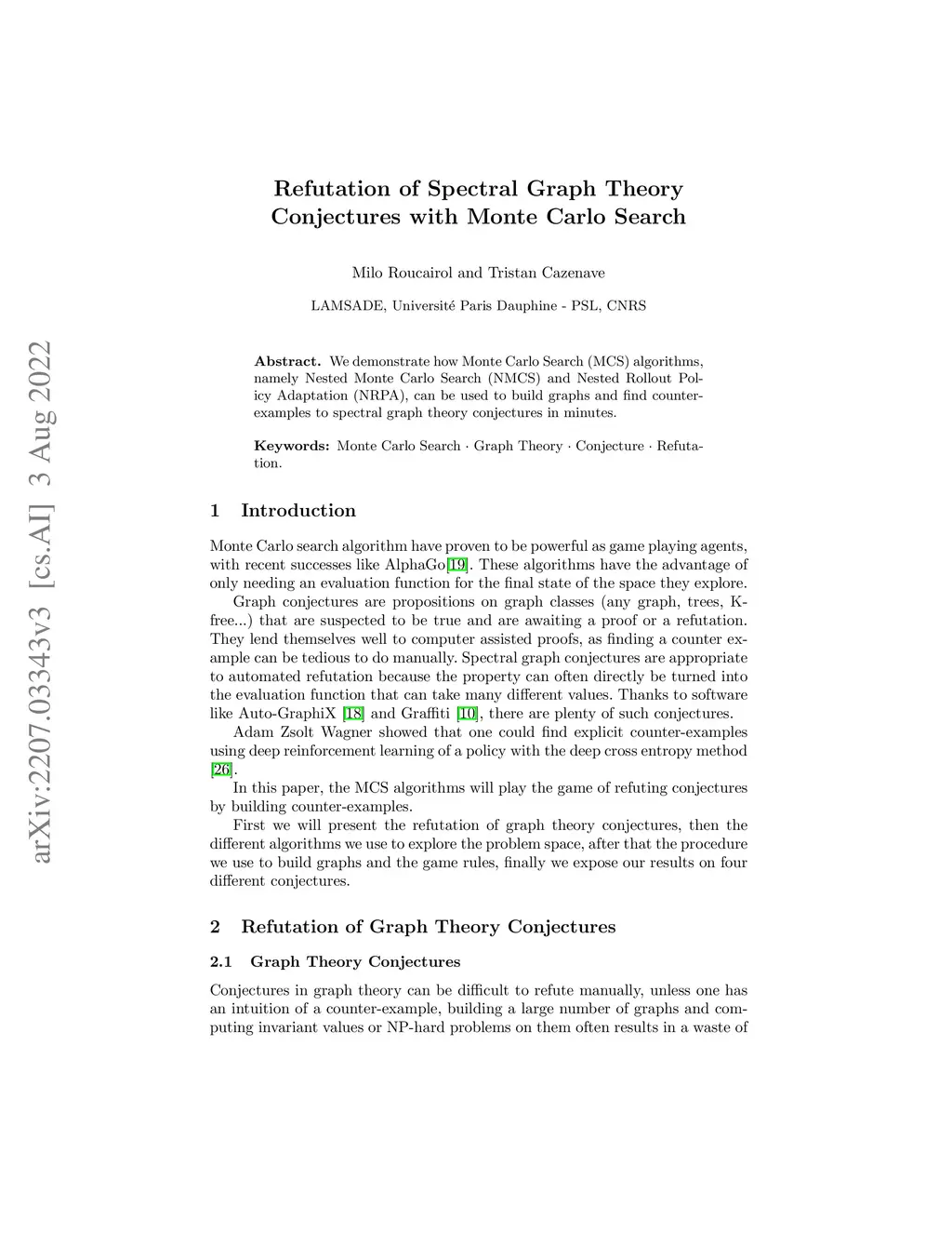 We demonstrate how Monte Carlo Search (MCS) algorithms, namely Nested Monte Carlo Search (NMCS) and Nested Rollout Policy Adaptation (NRPA), can be used to build graphs and find counter-examples to spectral graph theory conjectures in minutes.