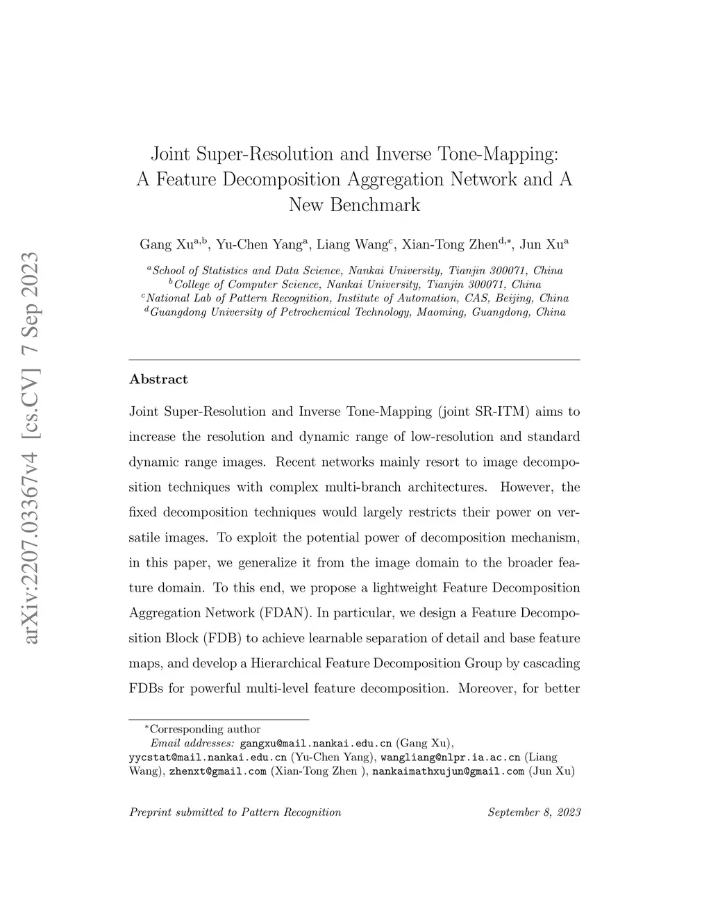 Joint Super-Resolution and Inverse Tone-Mapping: A Feature Decomposition