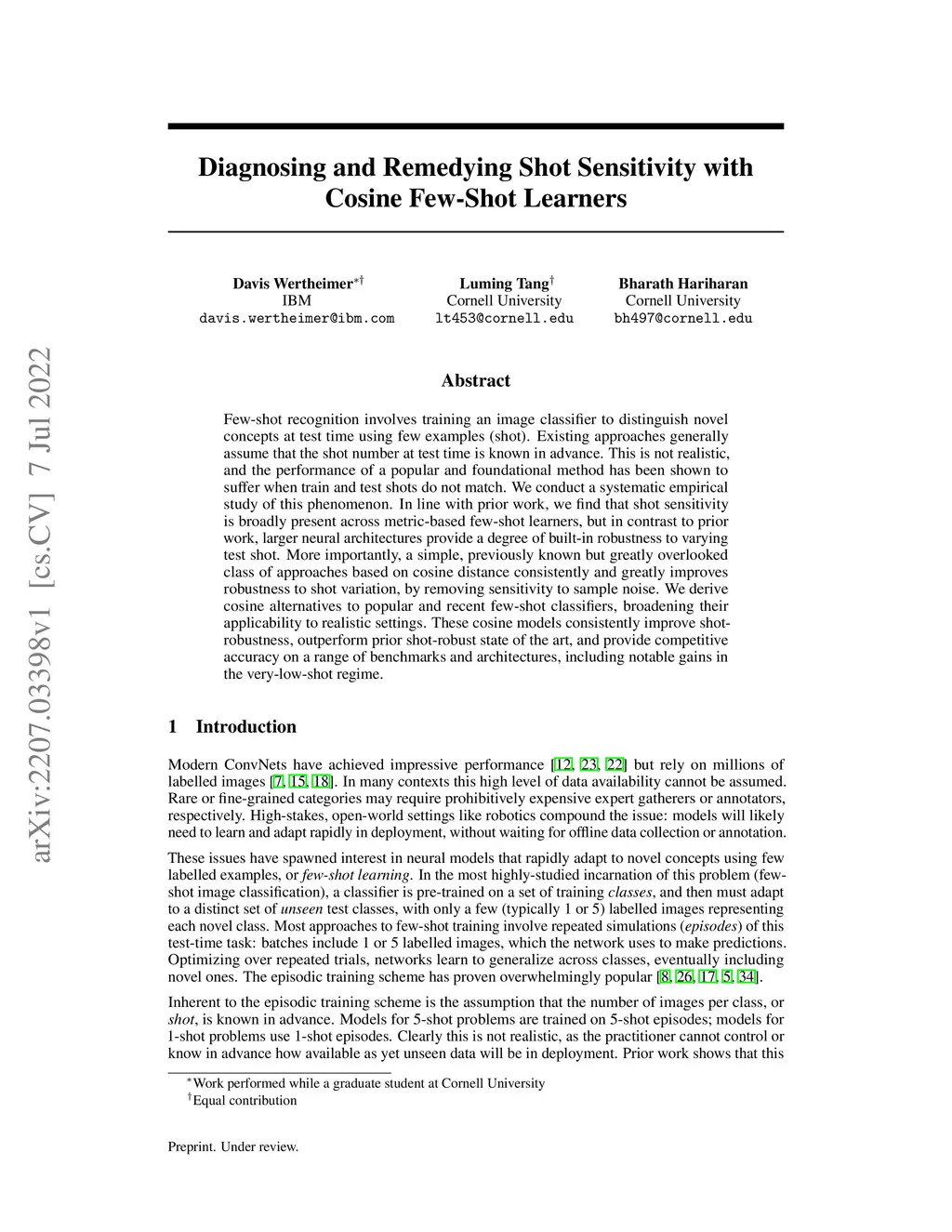 Diagnosing and Remedying Shot Sensitivity with Cosine Few-Shot Learners