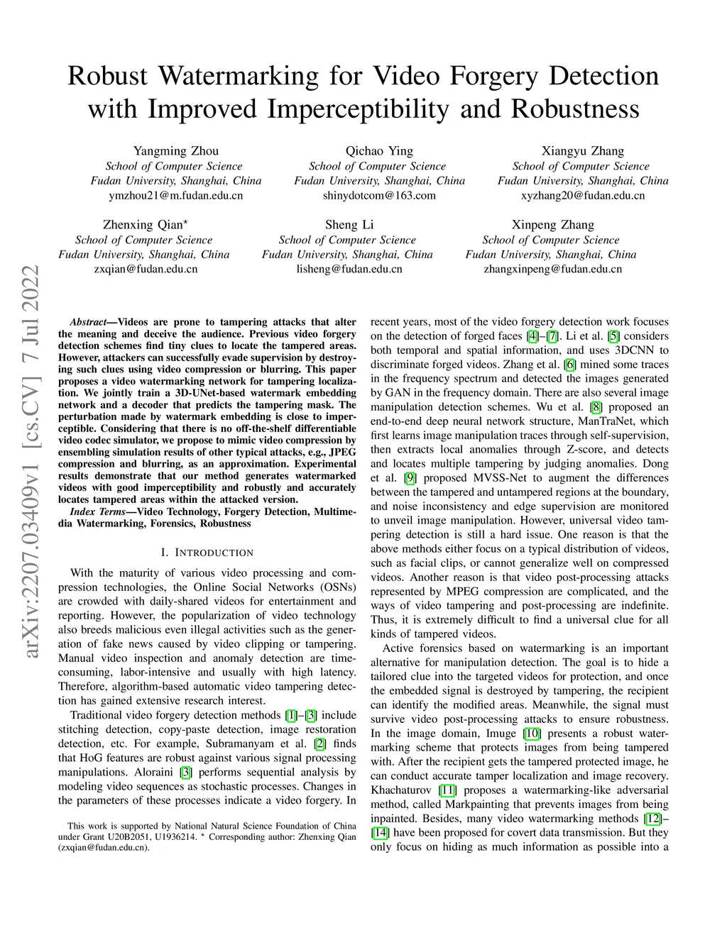 Robust Watermarking for Video Forgery Detection with Improved