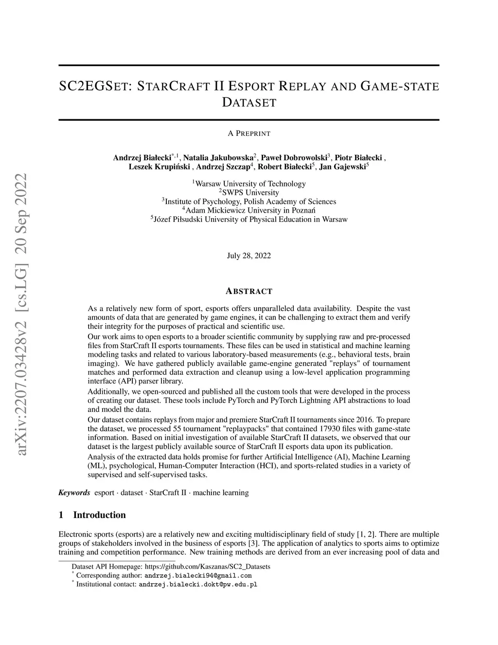 SC2EGSet: StarCraft II Esport Replay and Game-state Dataset