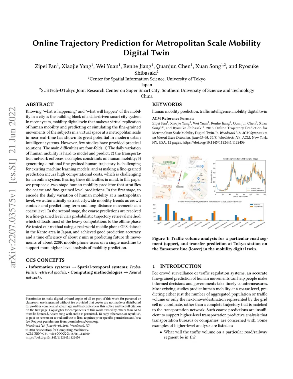Online Trajectory Prediction for Metropolitan Scale Mobility Digital