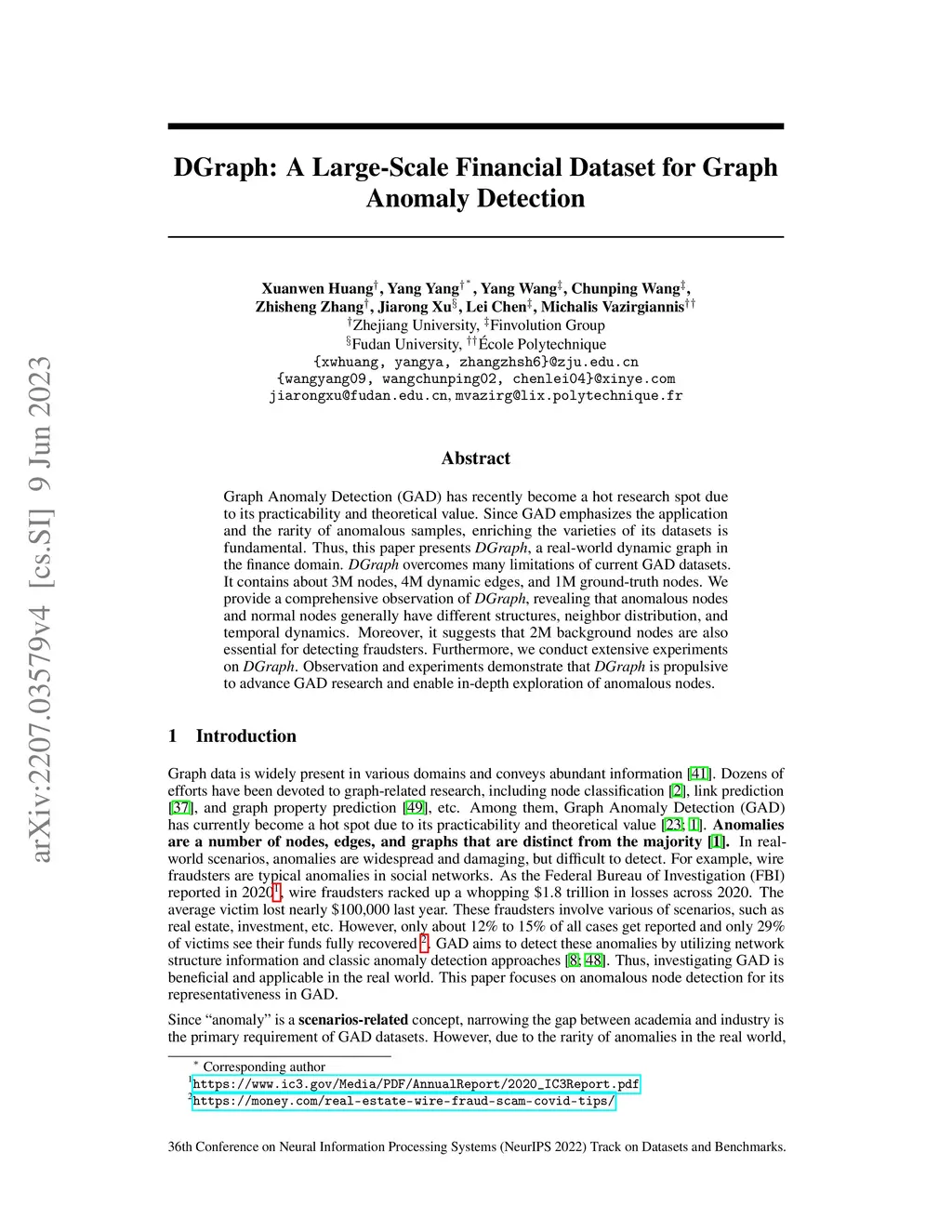 DGraph: A Large-Scale Financial Dataset for Graph Anomaly Detection