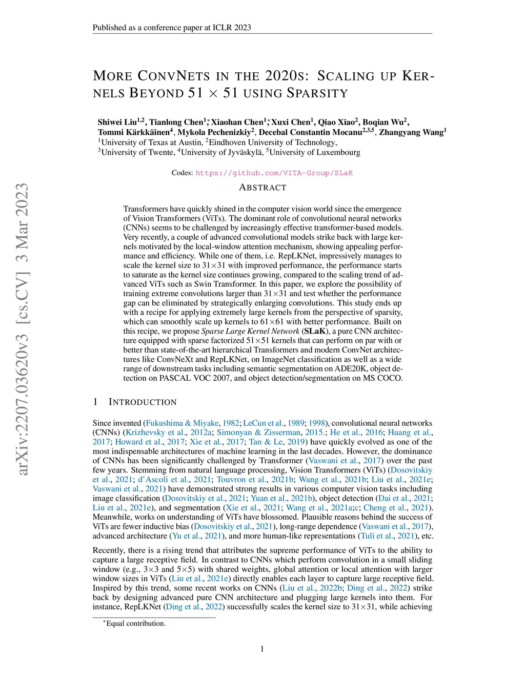 Transformers have quickly shined in the computer vision world since the emergence of Vision Transformers (ViTs). The dominant role of convolutional neural networks (CNNs) seems to be challenged by increasingly effective transformer-based models. Very recently, a couple of advanced convolutional models strike back with large kernels motivated by the local-window attention mechanism, showing appealing performance and efficiency. While one of them, i.e. RepLKNet, impressively manages to scale the kernel size to 31x31 with improved performance, the performance starts to saturate as the kernel size continues growing, compared to the scaling trend of advanced ViTs such as Swin Transformer. In this paper, we explore the possibility of training extreme convolutions larger than 31x31 and test whether the performance gap can be eliminated by strategically enlarging convolutions. This study ends up with a recipe for applying extremely large kernels from the perspective of sparsity, which can smoothly scale up kernels to 61x61 with better performance. Built on this recipe, we propose Sparse Large Kernel Network (SLaK), a pure CNN architecture equipped with sparse factorized 51x51 kernels that can perform on par with or better than state-of-the-art hierarchical Transformers and modern ConvNet architectures like ConvNeXt and RepLKNet, on ImageNet classification as well as a wide range of downstream tasks including semantic segmentation on ADE20K, object detection on PASCAL VOC 2007, and object detection/segmentation on MS COCO.