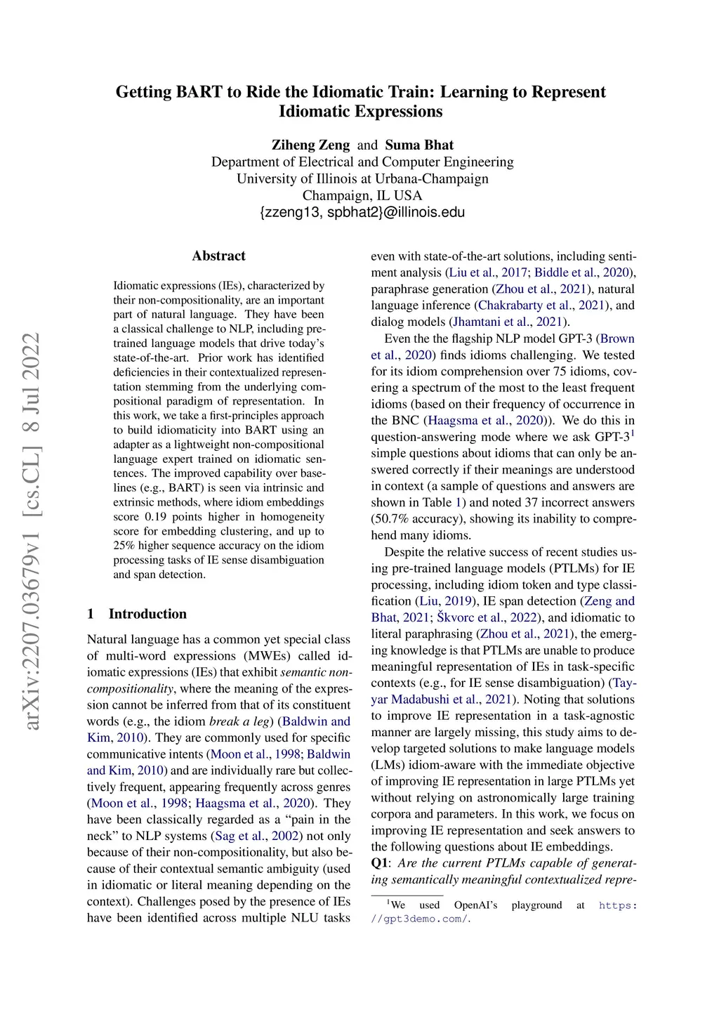 Getting BART to Ride the Idiomatic Train: Learning to Represent