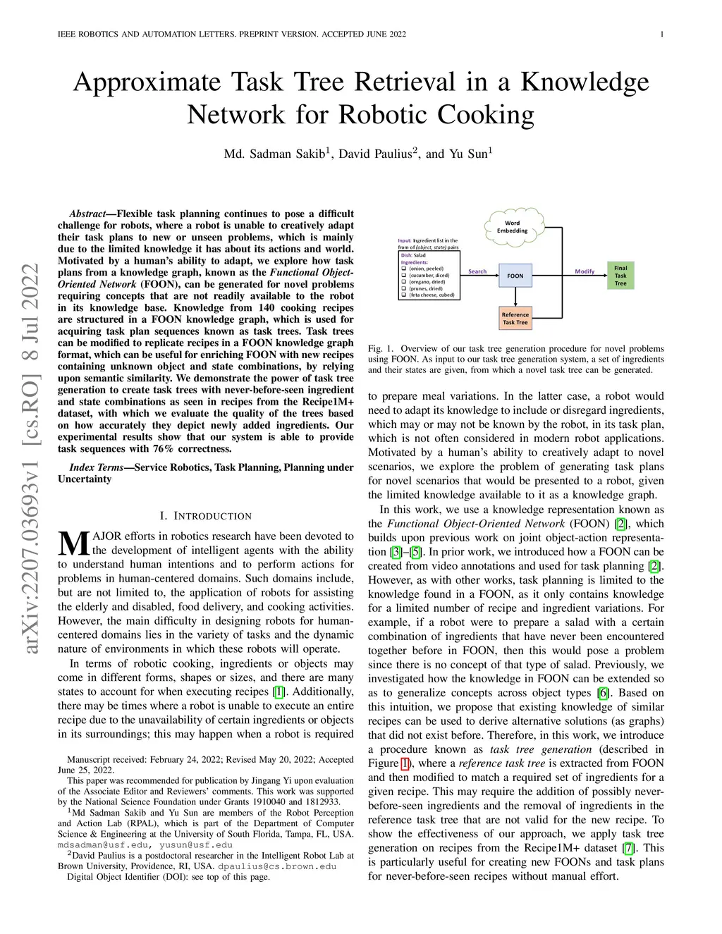 Flexible task planning continues to pose a difficult challenge for robots, where a robot is unable to creatively adapt their task plans to new or unseen problems, which is mainly due to the limited knowledge it has about its actions and world. Motivated by a human's ability to adapt, we explore how task plans from a knowledge graph, known as the Functional Object- Oriented Network (FOON), can be generated for novel problems requiring concepts that are not readily available to the robot in its knowledge base. Knowledge from 140 cooking recipes are structured in a FOON knowledge graph, which is used for acquiring task plan sequences known as task trees. Task trees can be modified to replicate recipes in a FOON knowledge graph format, which can be useful for enriching FOON with new recipes containing unknown object and state combinations, by relying upon semantic similarity. We demonstrate the power of task tree generation to create task trees with never-before-seen ingredient and state combinations as seen in recipes from the Recipe1M+ dataset, with which we evaluate the quality of the trees based on how accurately they depict newly added ingredients. Our experimental results show that our system is able to provide task sequences with 76% correctness.