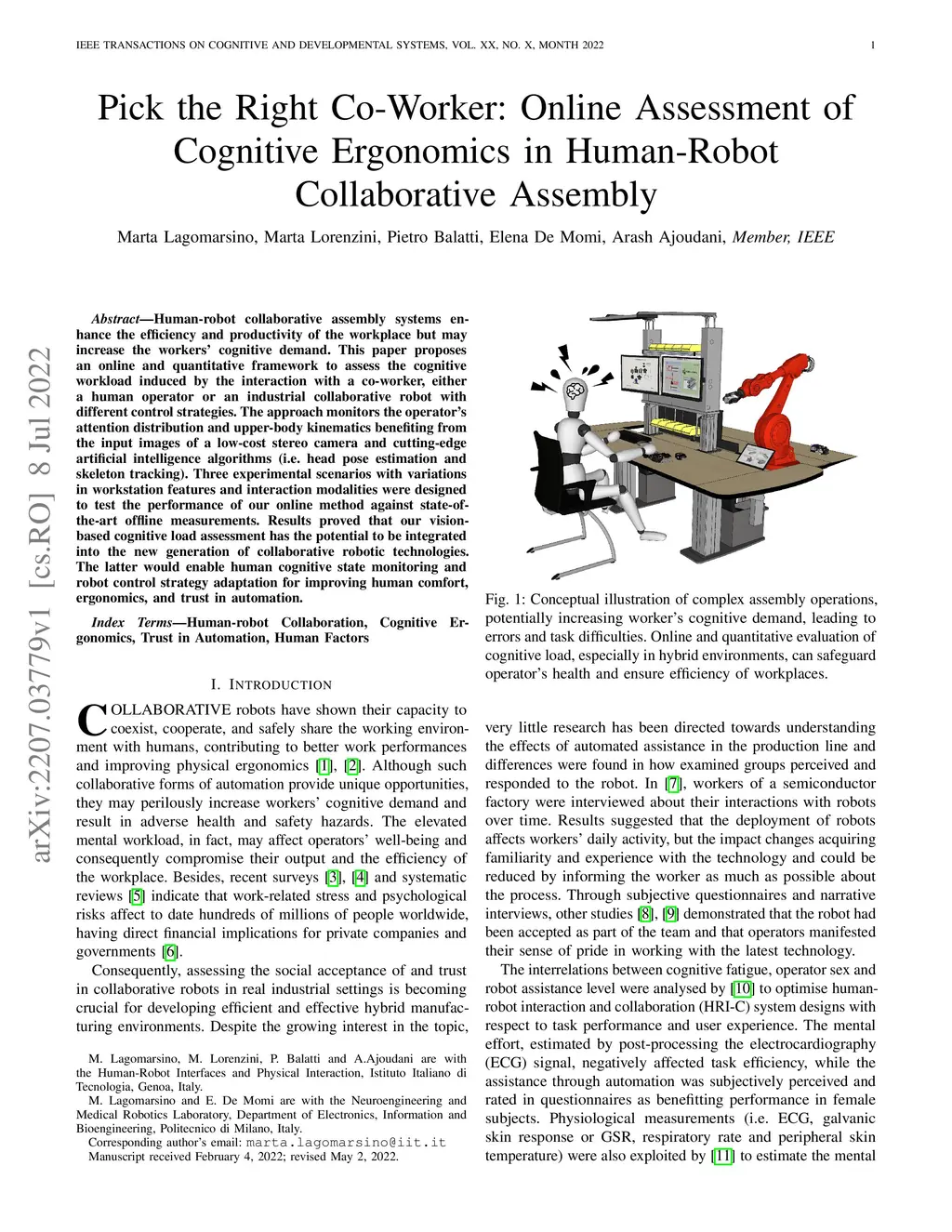 Pick the Right Co-Worker: Online Assessment of Cognitive Ergonomics in