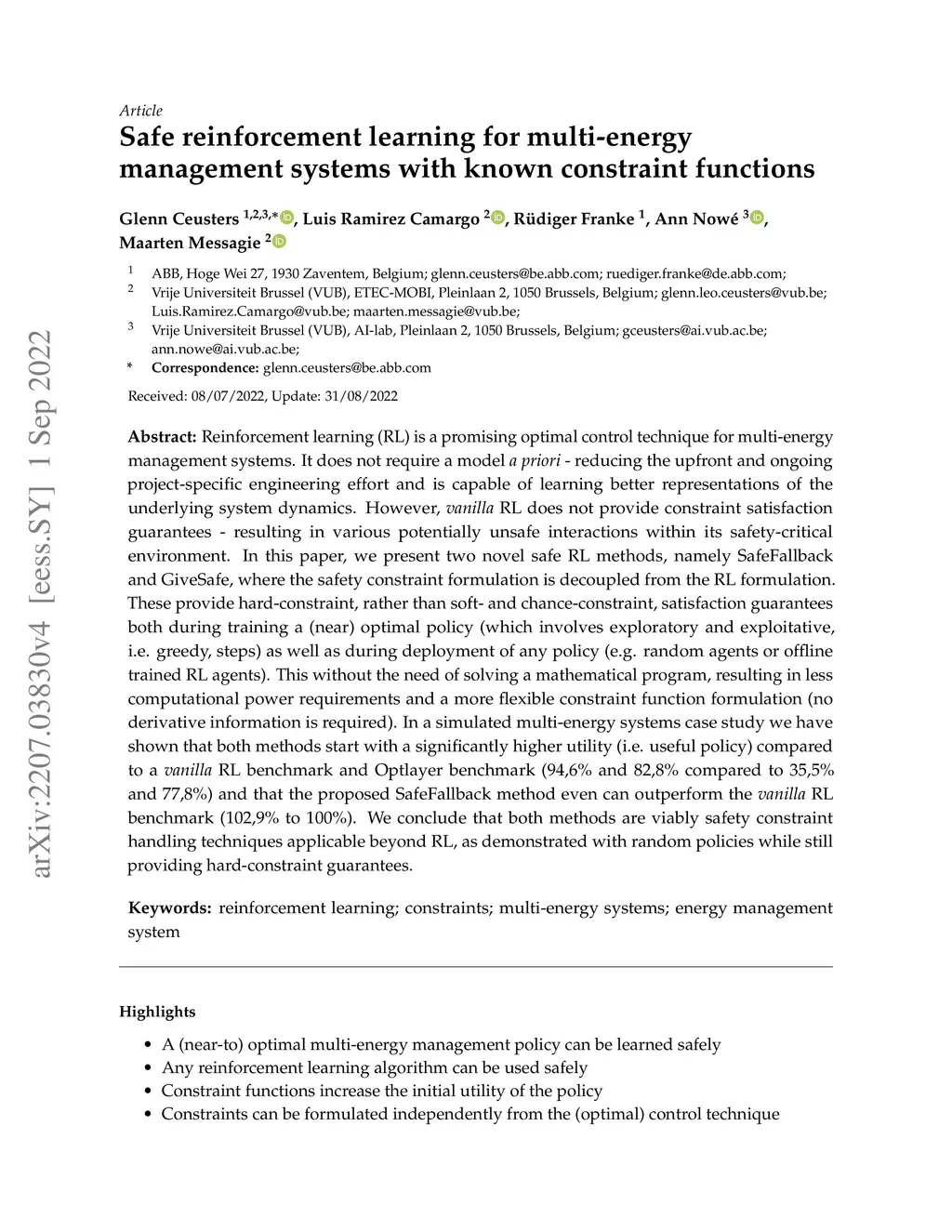 Safe reinforcement learning for multi-energy management systems with