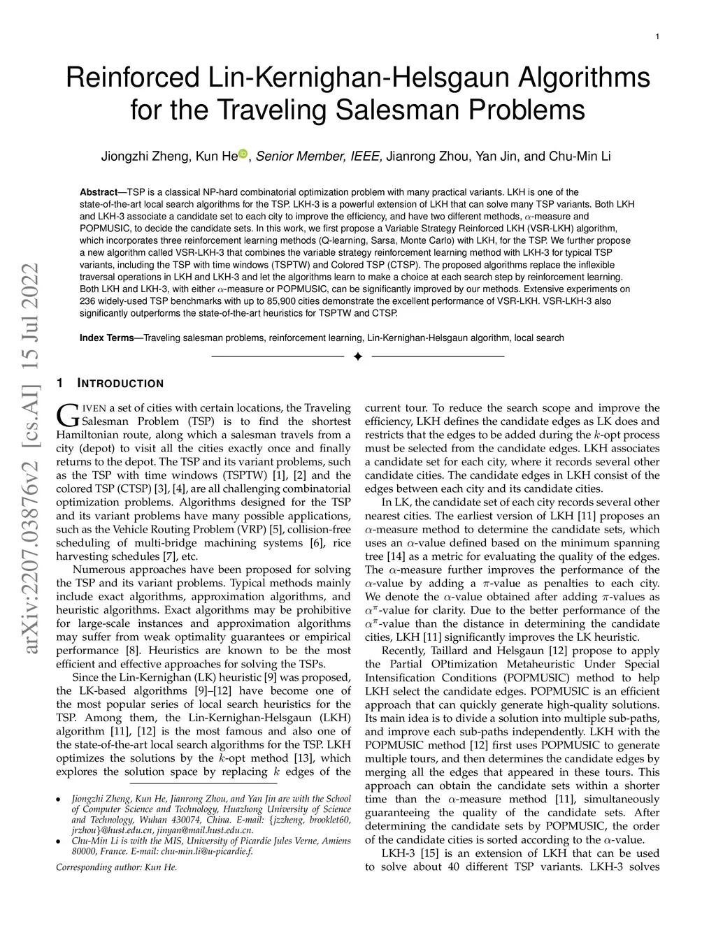 Reinforced Lin-Kernighan-Helsgaun Algorithms for the Traveling Salesman