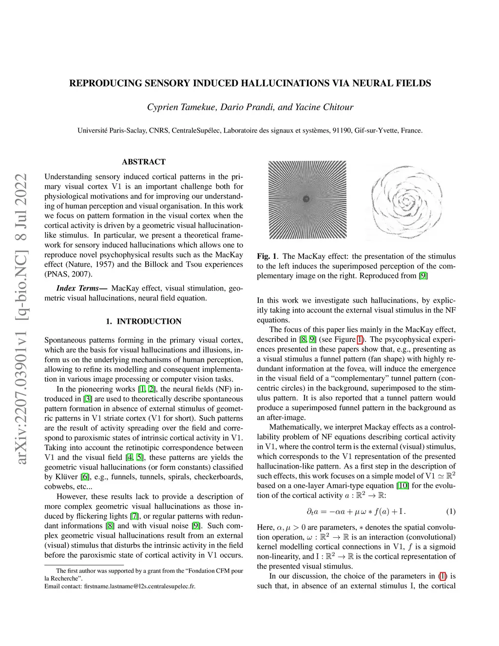 Reproducing sensory induced hallucinations via neural fields