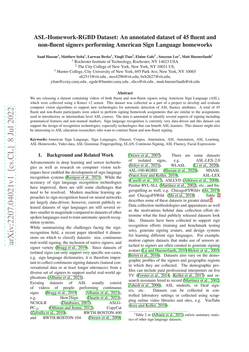ASL-Homework-RGBD Dataset: An annotated dataset of 45 fluent and