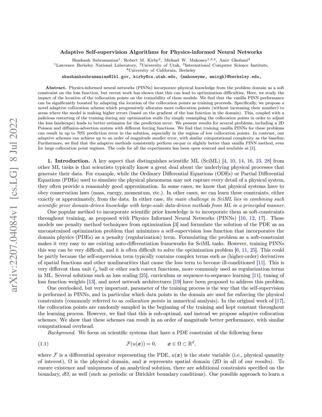 Adaptive Self-supervision Algorithms for Physics-informed Neural