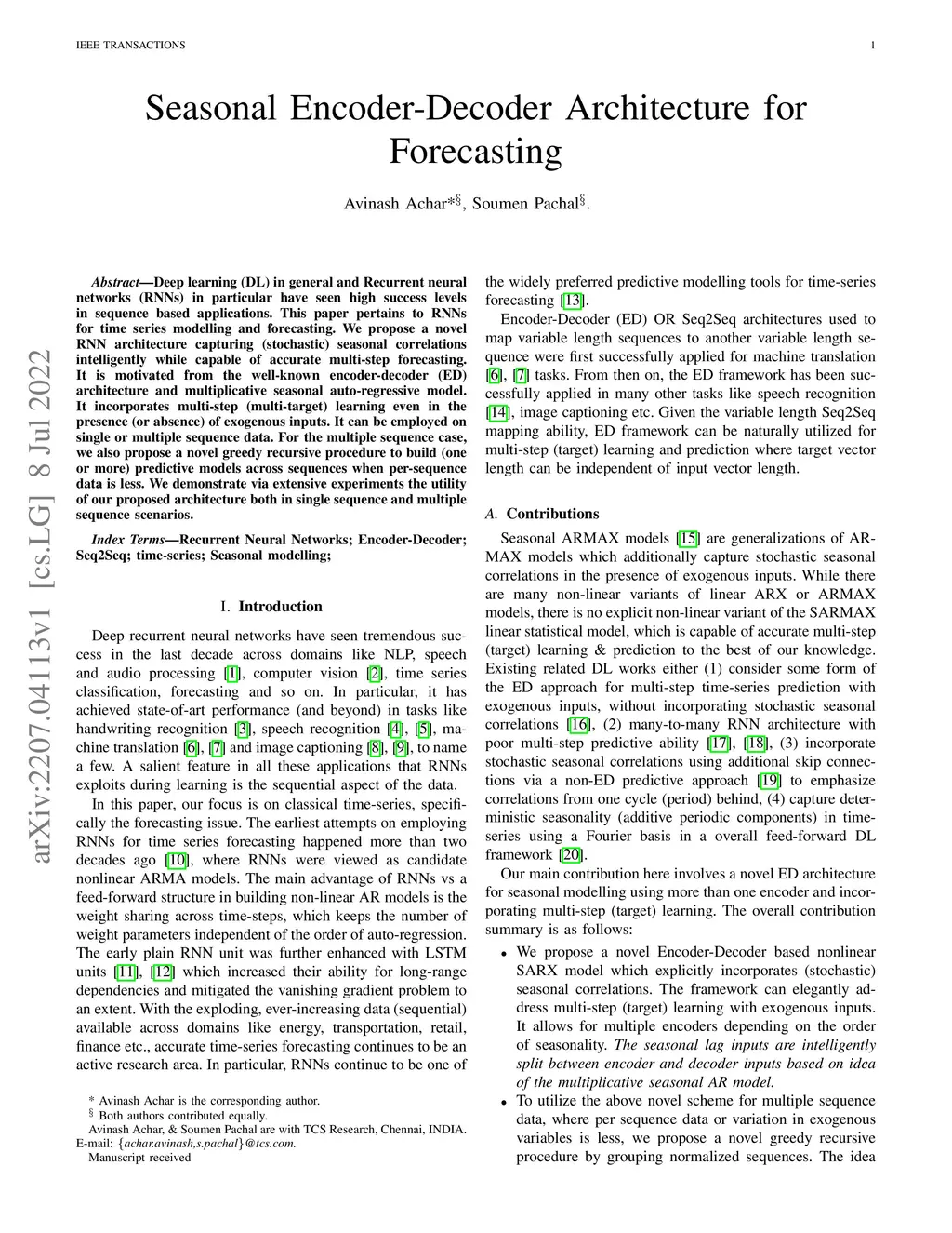 Seasonal Encoder-Decoder Architecture for Forecasting