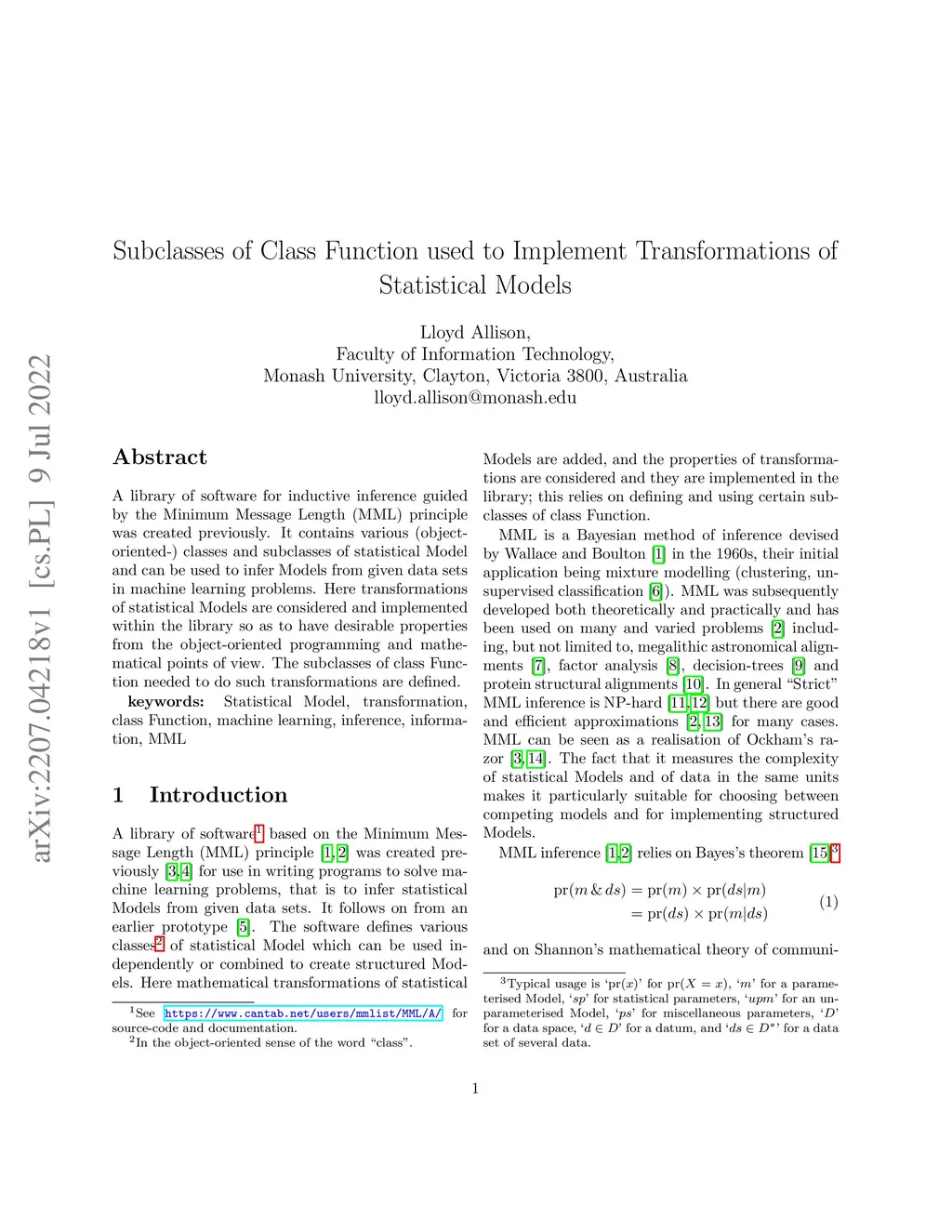 A library of software for inductive inference guided by the Minimum Message Length (MML) principle was created previously. It contains various (object-oriented-) classes and subclasses of statistical Model and can be used to infer Models from given data sets in machine learning problems. Here transformations of statistical Models are considered and implemented within the library so as to have desirable properties from the object-oriented programming and mathematical points of view. The subclasses of class Function needed to do such transformations are defined.