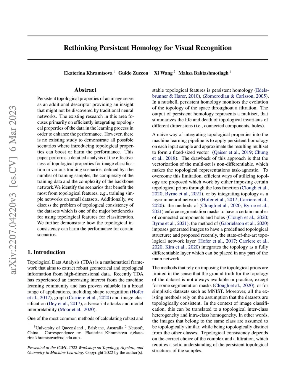 Persistent topological properties of an image serve as an additional descriptor providing an insight that might not be discovered by traditional neural networks. The existing research in this area focuses primarily on efficiently integrating topological properties of the data in the learning process in order to enhance the performance. However, there is no existing study to demonstrate all possible scenarios where introducing topological properties can boost or harm the performance. This paper performs a detailed analysis of the effectiveness of topological properties for image classification in various training scenarios, defined by: the number of training samples, the complexity of the training data and the complexity of the backbone network. We identify the scenarios that benefit the most from topological features, e.g., training simple networks on small datasets. Additionally, we discuss the problem of topological consistency of the datasets which is one of the major bottlenecks for using topological features for classification. We further demonstrate how the topological inconsistency can harm the performance for certain scenarios.